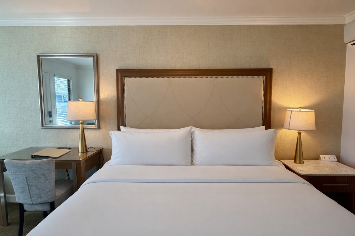 Napa Valley Marriott Hotel & Spa alberga alojamientos modernos y cómodos en el corazón de la región vinícola de California. Con sábanas de alta calidad y productos para el cuerpo y el baño de calidad de spa, nuestras habitaciones y suites contemporáneas de Napa Valley están diseñadas para ayudarte a relajarte. Cambia a nuestras habitaciones con vistas al jardín para que tu estancia sea aún más inspiradora.