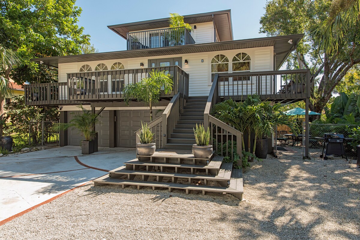 Hemos renovado una casa de estilo Key West y la hemos convertido en un moderno oasis playero. ¡Puedes ir en kayak, en bicicleta y en barco a la playa directamente desde la casa! Este barrio seguro frente al mar tiene mucha gente amable que camina, corre, va en bicicleta, pasea a sus perros, etc. La casa está a 1/4 de milla de la playa en línea recta. Las entradas a la playa están a 2 millas de distancia. Tenemos 2 bonitas bicicletas para adultos, kayaks y cañas de pescar para que las utilices. Situada junto a Wiggins Pass Road, entre la 41 y el mar. Casa sobre pilotes. Ni siquiera necesitas un coche.