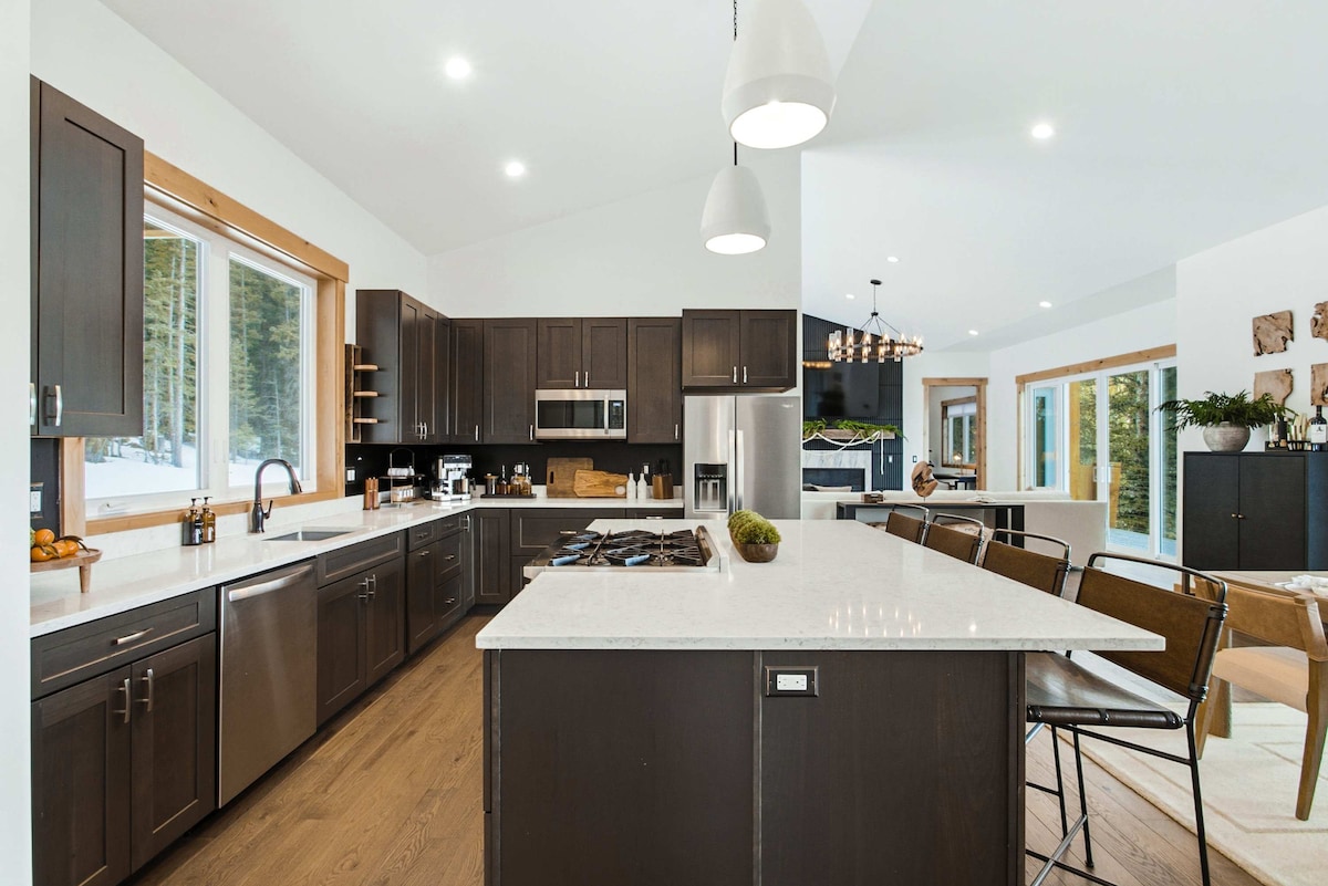 ¡Relájate y desconecta en esta exclusiva y elegante cabaña de las montañas Rocosas! Esta adorable cabaña está a pocos minutos de esquí, senderismo, ciclismo, tiendas, restaurantes y toda la belleza que las Montañas Rocosas tienen para ofrecer. ¡Disfruta de un día lleno de aventuras y luego elige tu forma favorita de relajarte! Ya sea sentado en la sala de estar disfrutando del fuego, acurrucado junto a la chimenea en la espaciosa terraza o descansando en el jacuzzi privado, ¡esta casa tiene algo para todos!