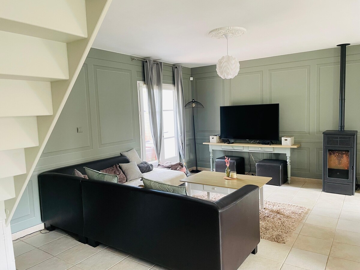 Disfrute de un alojamiento tranquilo y elegante. Esta casa de 35 m2 le traerá todas las comodidades: en la planta baja una hermosa sala de estar con su cocina equipada y equipada con vistas a una terraza privada, un inodoro y lavadora. Arriba: un dormitorio con una cama de matrimonio, una ducha, armario, escritorio auxiliar Se puede proporcionar ropa de cama y toallas, pero solo bajo petición. Acceso wifi gratuito. Aparcamiento gratuito. Prestamos especial atención a la limpieza.