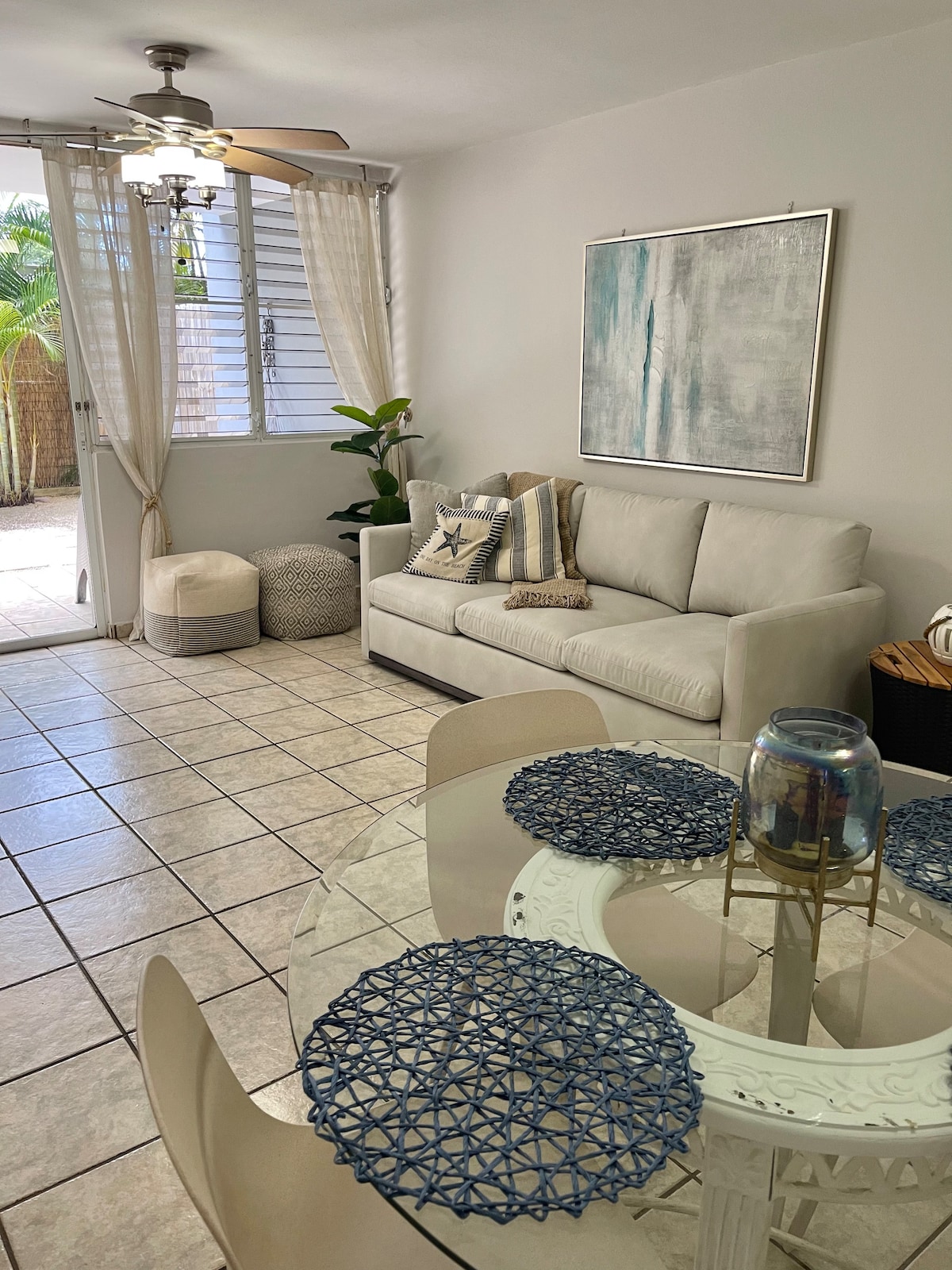 Descripción del Apartamento: - **Ubicación**: Primer nivel, esquina, lo que ofrece un acceso fácil. - **Habitaciones**: 2 habitaciones con aire acondicionado. - **Baños**: 2 baños, lo que permite mayor privacidad. - **Espacios Comunes**: Sala y comedor espaciosos. - **Cocina**: Completamente equipada. - **Balcón**: Incluye un patio. Accesorios de Playa: - **Sombrilla, sillas y nevera de playa**: # Conexión a Internet: - **Wifi**: Conexión disponible. Espero que tengas una maravillosa estadía!