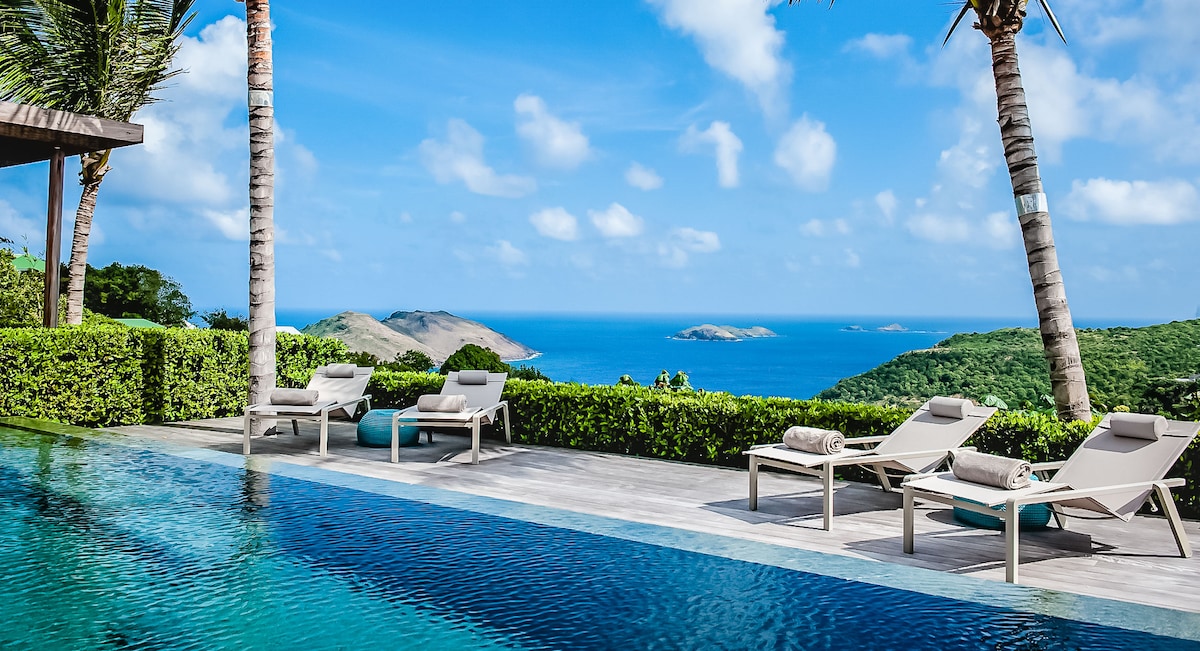 Nestled into the lush green hillside of Jean Bay, this classic St. Bart’s villa focuses on relaxing vibes and scenic ocean views. Whether you are lounging by the pool or sharing a meal on the upper terrace, you’ll have the breathtaking Caribbean Sea right there with you. When you’re ready to explore, Nikki and St. Jean beaches are nearby, as well as shopping, and the Capital, Gustavia. Copyright © Luxury Retreats. All rights reserved. BEDROOM & BATHROOM • Bedroom 1 - Primary: Queen size bed, Ensuite bathroom with 2 stand-alone rain showers, Dual vanity, Bidet, Television, Safe, Ceiling fan, Private balcony, Ocean view • Bedroom 2: Queen size bed, Ensuite bathroom with stand-alone rain shower, Television, Safe, Terrace • Bedroom 3: Queen size bed, Ensuite bathroom with stand-alone rain shower, Television, Safe, Terrace • Bedroom 4: 2 Twin size beds, Ensuite bathroom with stand-alone shower STAFF & SERVICES Extra Cost (advance notice may be required): • Activities and excursions • Washer/dryer services
