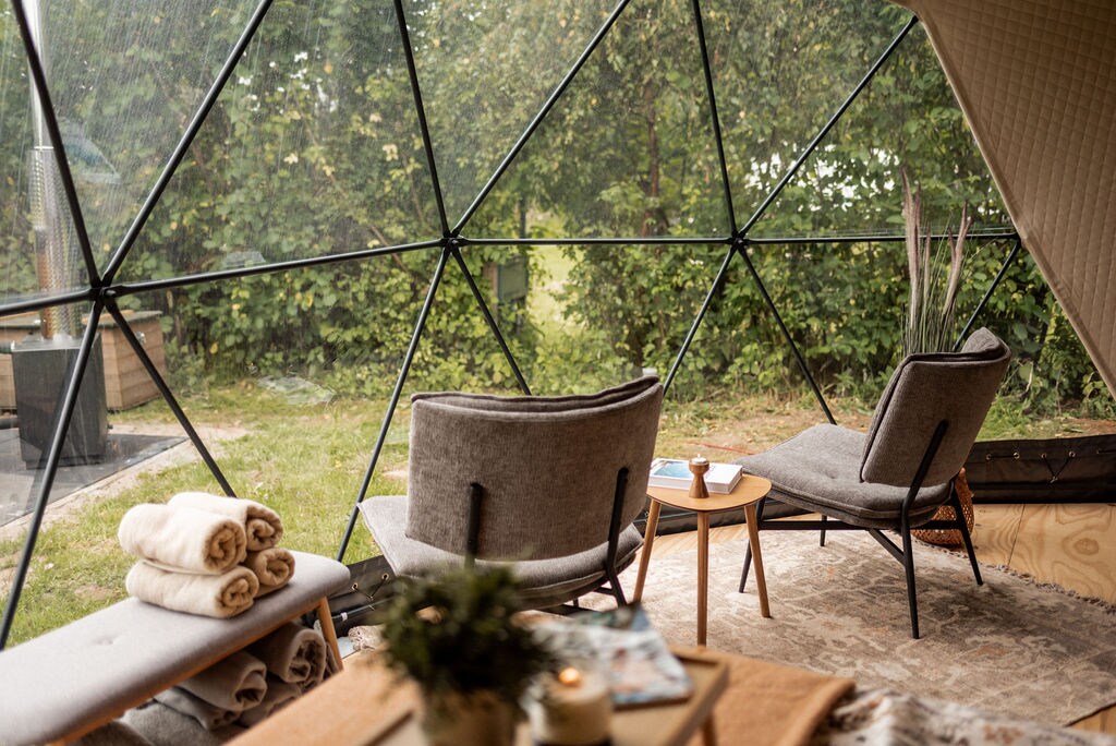 Glamping Blessed cuenta con 15 domos de lujo que están equipados para 4, 6 u 8 personas. Las cúpulas están provistas de los siguientes elementos: - Juego de jardín al aire libre con sillas de descanso - Camas con ropa de cama (incluido colchón térmico) - Refrigerador pequeño. - Tu propia barbacoa. - Electricidad - Toallas. - Platos, cubiertos y tazas. - lujosos baños y duchas con Rituals (20m) La edad mínima es de 21 años.