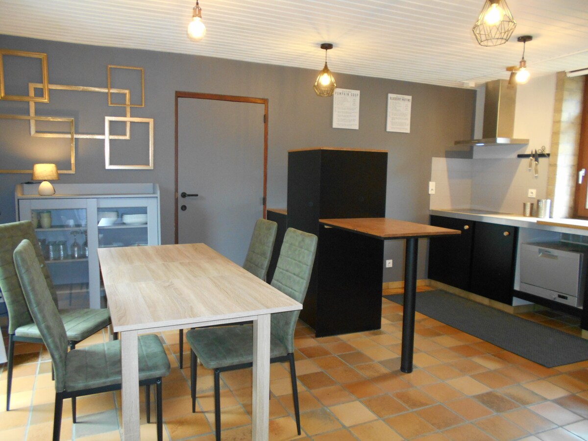 Una casa de campo con todas las comodidades con un encanto auténtico. Venga a descubrir el encanto de una casa acogedora con capacidad para 6 personas que consta de 2 dormitorios, incluida una suite principal con el baño (el único baño). Un hermoso exterior con gran terraza y mobiliario de jardín. Cocina ultra equipada con nevera Smeg, bodega, doble horno, ... Desde muchos paseos, carnicería, panadería y restaurantes en el pueblo. Situado a dos pasos de Bouillon, Rochehaut,...