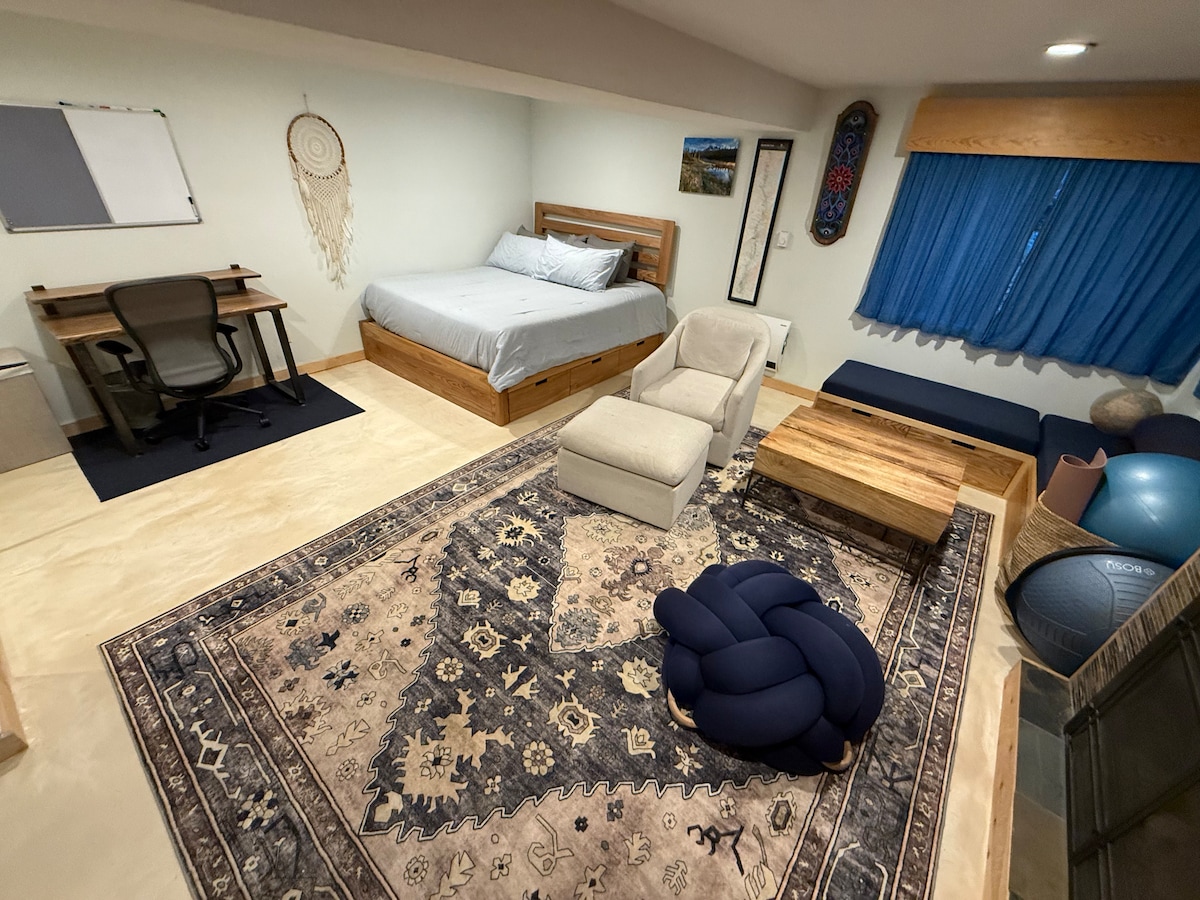 Este apartamento compacto e independiente (con entrada privada) está adjunto a una casa de diseño arquitectónico enclavada en una ladera boscosa con vistas a una gran pradera. Su ubicación remota, a 6 minutos en coche por encima de la ciudad de Oregon House, es un lugar ideal para una escapada. Con todo el apartamento para ti puede ser un retiro perfecto, un fin de semana romántico o un espacio tranquilo de trabajo/estudio. Un lugar para relajarse, meditar, leer y sentirse en un mundo alejado de las preocupaciones cotidianas. No se aceptan reservas para el mismo día.