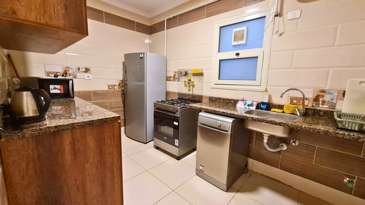 Aviso: La piscina y el gimnasio compartidos están cerrados por mantenimiento hasta el 30 de abril. Hemos fijado el precio en consecuencia. Todos los demás servicios (recepción 24/7, seguridad, Wi-Fi) están en pleno funcionamiento. Elegante departamento de 3 dormitorios y 2 baños en Nueva El Cairo, con un dormitorio principal con baño en suite y un sofá cama en la sala de estar, ideal para familias y grupos. Disfrute de mucha luz natural, ropa de cama y sábanas de primera calidad, y una cocina totalmente equipada. El edificio cuenta con recepción y seguridad las 24 horas, los 7 días de la semana, y también ofrecemos un servicio de conserjería interno.