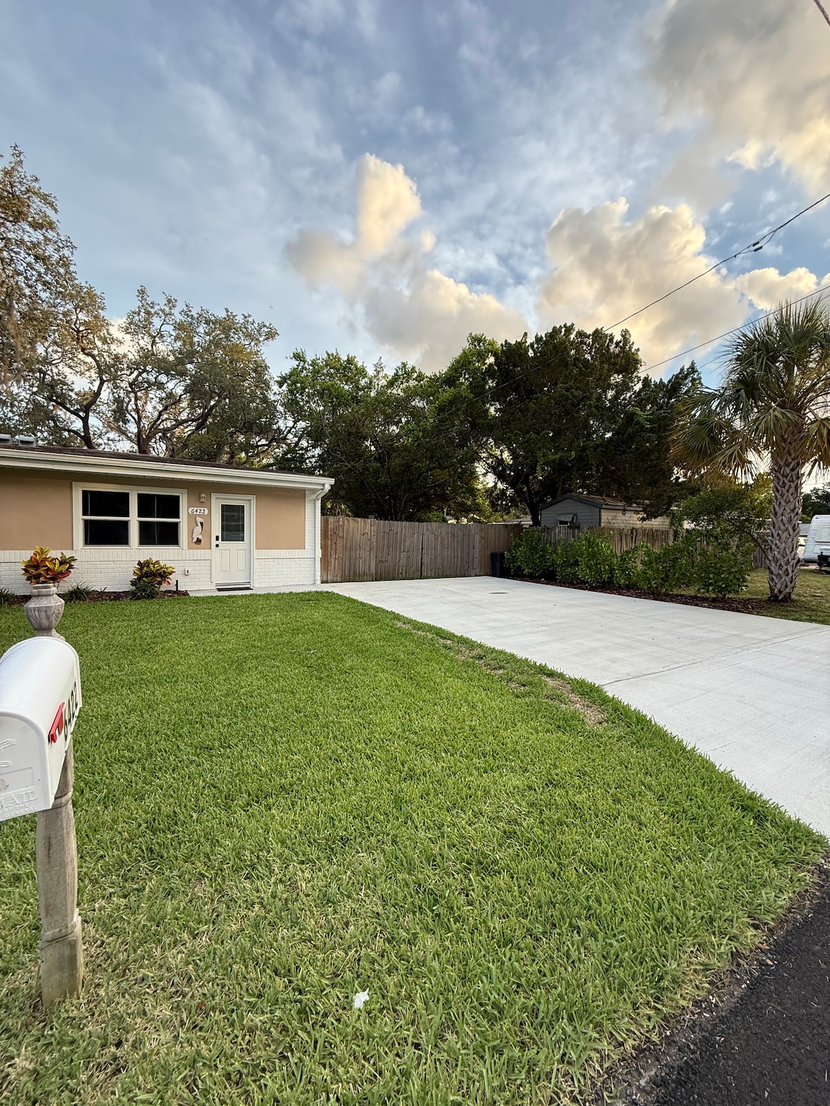 Ubicada en el corazón del encantador New Port Richey, nuestra casa ofrece una mezcla perfecta de comodidad costera y encanto de pueblo pequeño. Ya sea que te estés relajando en el porche con una copa de vino o saliendo a explorar las tiendas, parques y restaurantes locales, esta casa es tu refugio tranquilo. Diseñado cuidadosamente con toques acogedores y modernos, es el lugar ideal para parejas, familias o viajeros solitarios que buscan relajarse y experimentar la costa del Golfo de Florida en su máxima expresión.