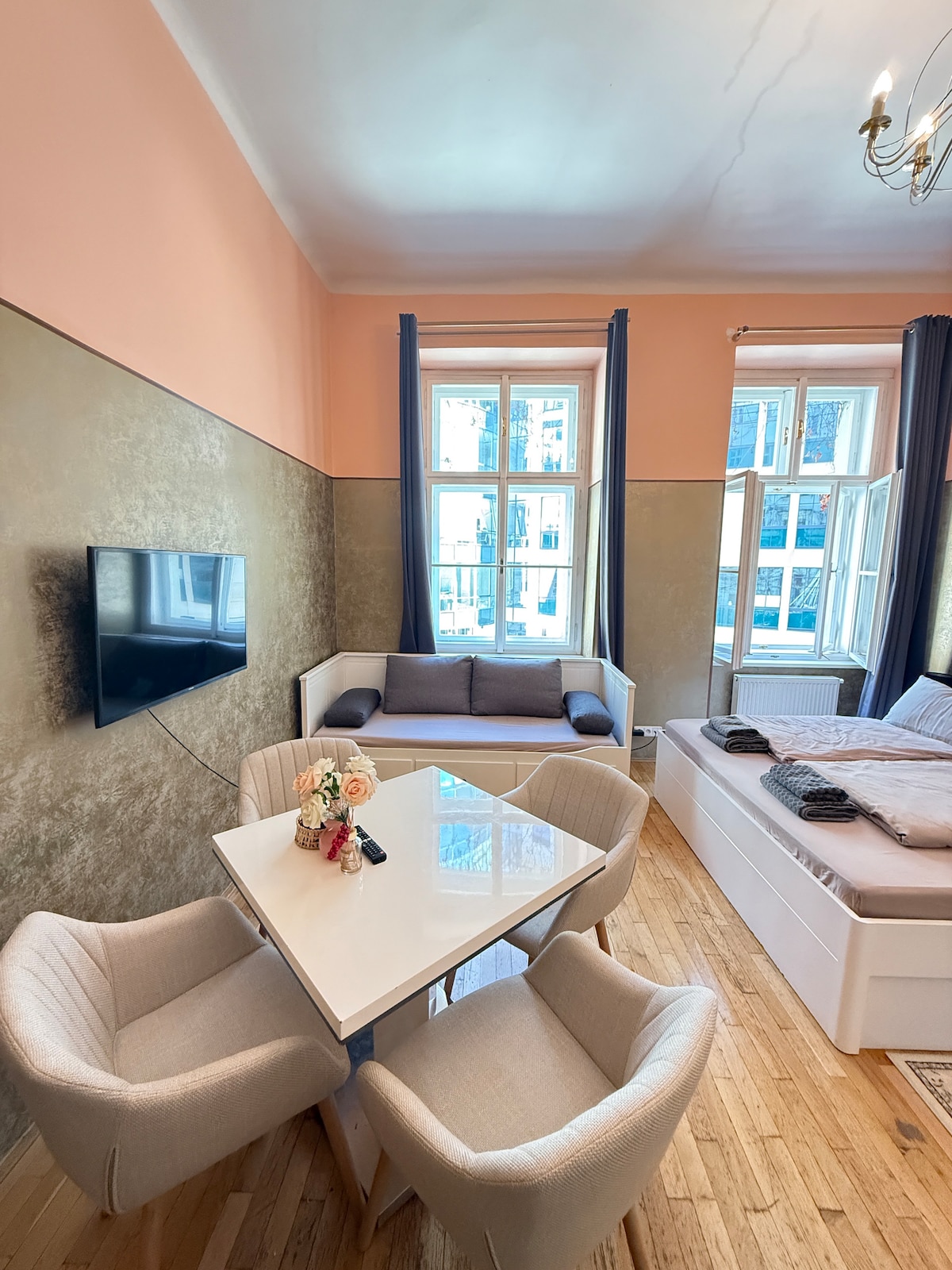 A new, luxury, one bedroom apartment in recently renovated historical building in the old center of Prague. The apt. has very modern interior combined with classic wooden elements. There's a quiet bedroom with double bed and a high quality mattress, a fully equipped kitchen, a comfortable living room with a sofa bed and a separate bathroom. Fast internet. The apt. is perfect for two but it comfortably hosts up to four guests. The building has 24/7 receptionist and security on duty.