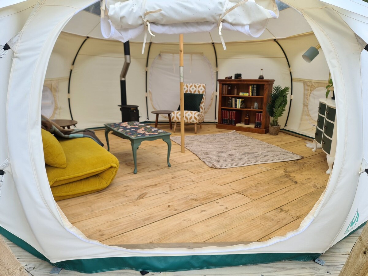 Impresionantes vistas desde una yurta cálida y acogedora.
