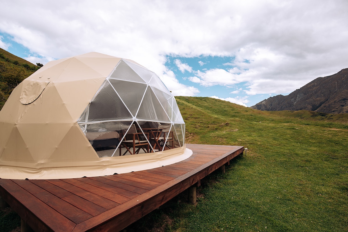 Disfruta de la fusión perfecta de comodidad y aventura en nuestras glamurosas cúpulas de camping, ubicadas en el corazón de Ben Lomond Station. Estas lujosas cúpulas ofrecen un refugio distintivo que combina a la perfección la acampada con los servicios de un hotel boutique. Disfruta de tu estancia en tiendas elegantemente amuebladas, con cómodas camas para una escapada serena y confortable. Despiértate con impresionantes vistas panorámicas del lago Moke y de las montañas. Encontrarás más información en glamcampingqueenstown.