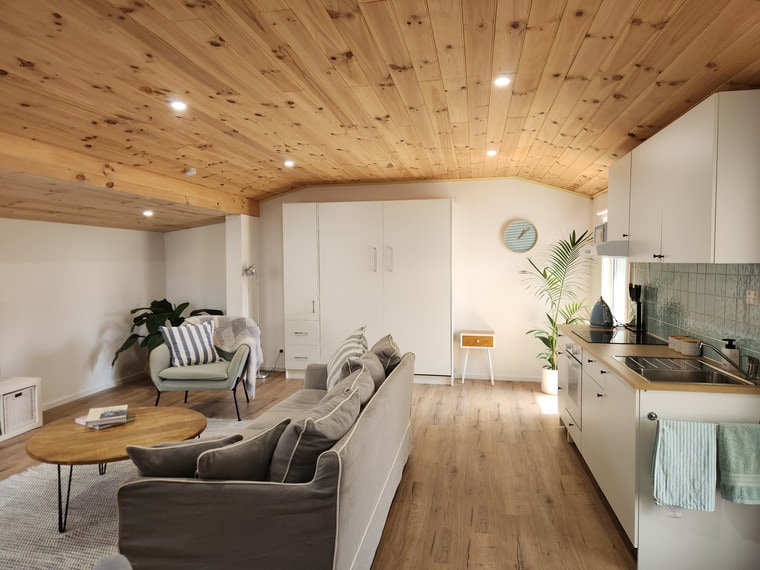 Coastal-modern private guesthouse studio space, only 500m from stunning Surf Beach, Phillip Island. Fully self-contained, detached from main house, access via side entrance, free off-street parking . Separate bathroom & fully functional kitchen. Edible garden space, outdoor verandah & firepit. Walking distance from a bottle shop & pizza & coffee vans, public transport & bicycle tracks. Perfect for couples, safe for singles, welcoming to LGBTQIA+, seniors & …dog friendly! (Sorry no cats)