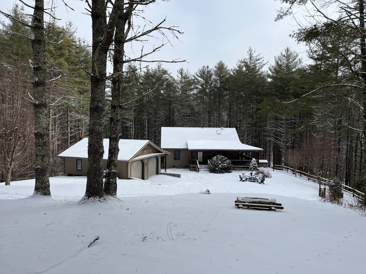 Situado en el pintoresco condado de Avery, aislado pero cerca de la ciudad, Alpenhaus se encuentra a más de 4000 pies. La casa cuenta con 2 terrazas cerradas y está rodeada de bosques en 3 lados. Despiértate con árboles verdes fuera de la ventana de tu dormitorio o contempla el amanecer reflejado en las montañas. Busca zorros mientras disfrutas del desayuno en la terraza orientada al sur. En otoño, observa cómo las hojas cambian de verde a tonos rojos y dorados. Disfruta de un partido de golf en el Mountain Glen Golf Club o conduce hasta Grandfather Mountain o Linville Falls, conduce por Blue Ridge Parkway o practica senderismo o rafting, ve las estalactitas en Linville Caverns y luego vuelve para apreciar la puesta de sol desde la ventana de la sala de estar. En invierno, disfruta de un día de esquí o trineo en las cercanas montañas Beech o Sugar. Jonas Ridge Snow Tubing también está cerca. Regresa a casa, construye un muñeco de nieve y disfruta de la chimenea de gas que quita el frío de la montaña por las noches. Experimenta nuestra cocina totalmente equipada si decides comer o aventurarte a los restaurantes locales en las cercanas Linville, Banner Elk, Boone o incluso Asheville. Disfruta del Festival Wooly Worm, la Feria Valle Crucis, la Música en la Cima de la Montaña, la Tierra de Oz, el Canto en la Montaña, los Juegos de las Tierras Altas, Shag at Sugar, el Oktoberfest en Sugar Mt. (porque, «En el cielo no hay cerveza... ¡por eso la bebemos aquí!») , espectáculos de artes y oficios y mucho más. Luego regresa a poca distancia a la tranquilidad de tu escapada a la montaña. NOTAS SOBRE LAS TARIFAS: Aceptamos mascotas, pero hay una tarifa de 50,00 dólares por mascota. Por favor avísanos con anticipación.