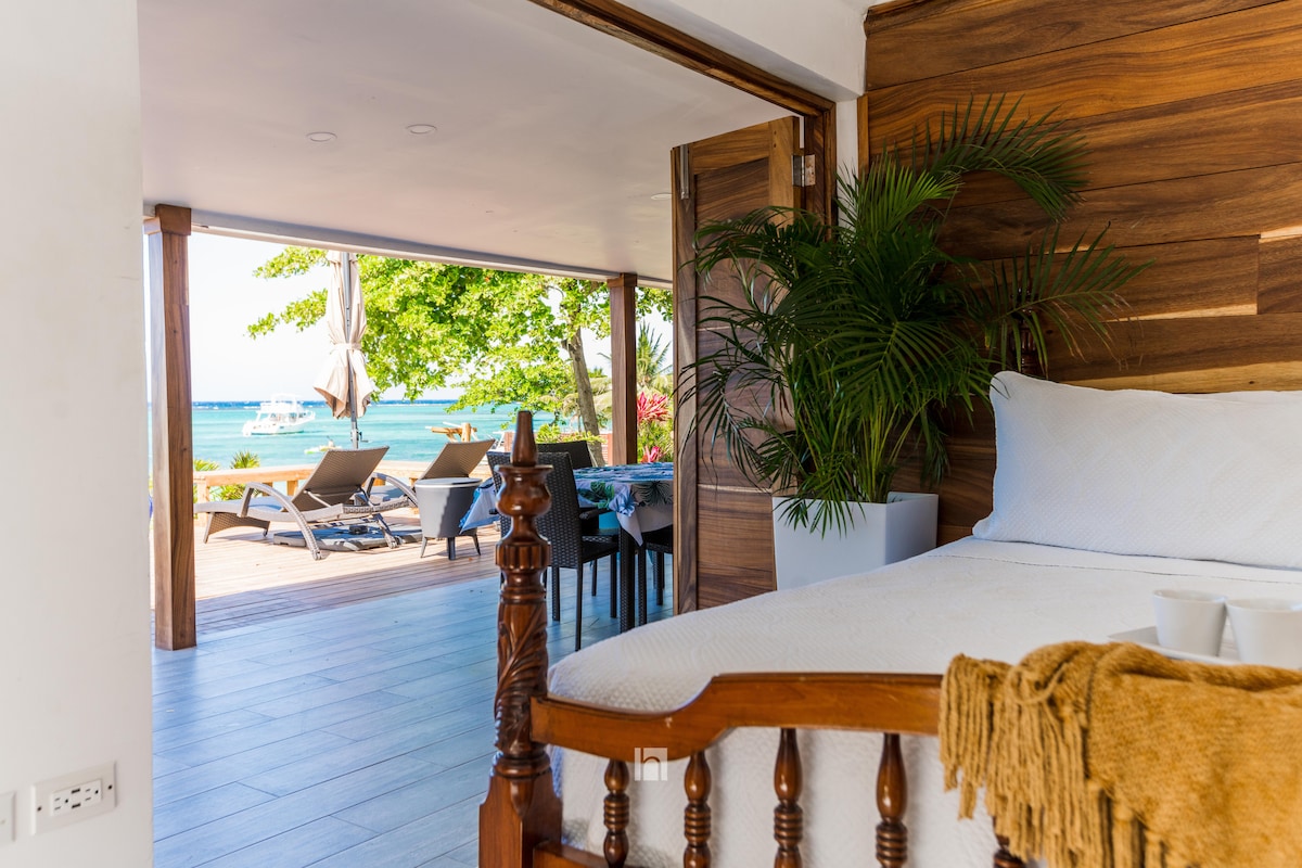 Despiértese con el sonido de las olas del Caribe y salga a su terraza privada de 15 × 45 pies, a solo 15 pies del mar. Su arrecife de coral privado está a 7 minutos a nado. Se incluye equipo de esnórquel, kayak y tabla de paddleboard. En el interior, cada acabado está hecho a mano con guango y hay obras de arte jamaicanas originales en todas las habitaciones, las cuales se pueden adquirir. Tu chef Elija entre nuestro menú de precio fijo o visite el mercado local y pida que le preparen comidas a su gusto. Desde el jerk jamaiquino hasta la cocina internacional, su chef se encarga de todo.