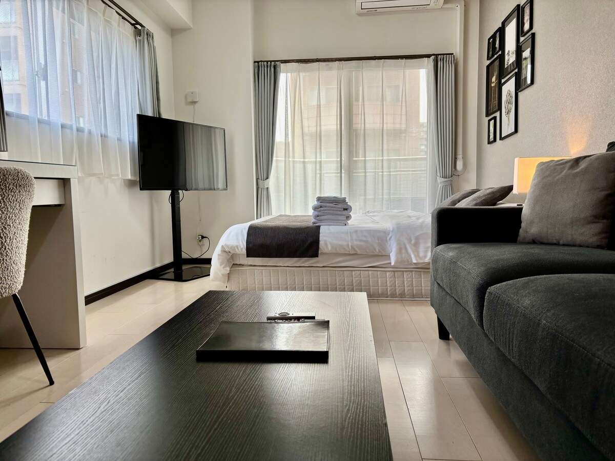 Apartamento tipo estudio de 55 metros cuadrados en el centro de Hiroshima con balcón con vista a la ciudad. Bueno para 6 personas. Con ascensor y cuenta con cerradura inteligente para la seguridad de todos los huéspedes. Habitación con wifi. Con servicios completos: sala de estar; comedor y cocina. Viene con lavadora. Inodoro y bañera separados. También se proporcionan artículos de tocador. Rodeado de tiendas de conveniencia y restaurantes. Ideal para grupos de amigos y familias.