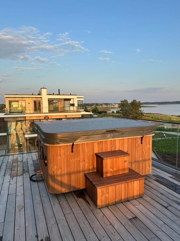 A luxury apartment built in to the woods. From the apartment it is often possible to observe wild animals. Jacuzzi is included. A la carte breakfast can be served for extra fee of 18€ per person. Private beaches to complete the luxury experience. Rowing boat rent on the lake is included. For additional service (250€ for a day) it is possible to enjoy traditional Estonian smoke sauna on the island. Preparing it takes approx. 8-9h, so 2 days notice would be required.