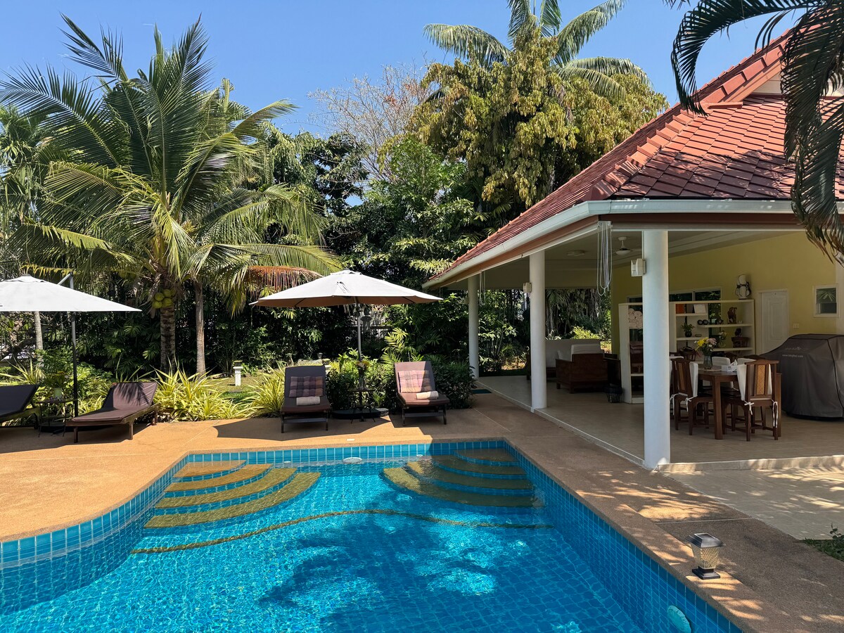 Descansa y relájate en tu oasis de estilo resort. ¡Tu grupo estará a minutos de las atracciones de Chiang Mai y a solo unos pasos de docenas de restaurantes y tiendas locales! Algunas cosas que te encantarán: Piscina estilo★ resort, 2 cabañas elegantes, (compartidas y espaciosas), putting green, mesa de billar de 7 pies ★Excelente ubicación. A pie de restaurantes y tiendas locales. A 5 minutos en coche de Meechok. Llega a Old City o Nimman en 15-20 minutos ★Fantástico concepto abierto de sala de estar, cocina y comedor; gran patio privado ★Limpieza profesional