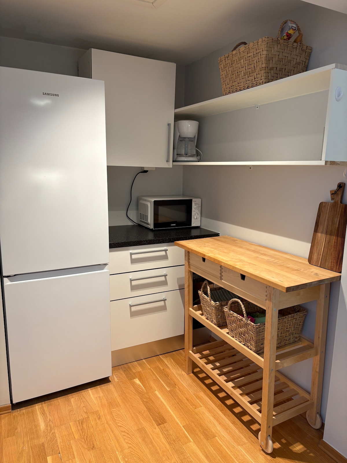 A small and cottage in Norway's best cottage area and cross-country ski resort, Sjusjøen. The cottage contains a hallway/kitchen, 1 bedroom, bathroom, living room and terrace. In the living room, the sofa can be folded into a double bed. The kitchen is fully equipped with induction hob and combi oven. There is no inlet water, but it is well-suited for those who want to take a little shower after a ski trip. In the bathroom there is also an infrared sauna that is quick to warm up.