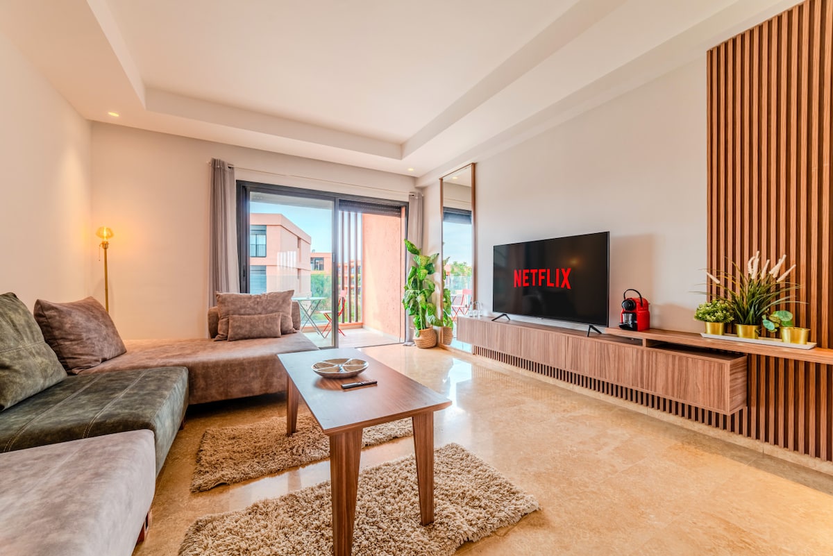 Bienvenido a su serena escapada en el corazón del elegante Noria Golf Club de Marrakech, donde la elegancia moderna se une al encanto marroquí. Este nuevo apartamento de 1 dormitorio y 1 baño es perfecto para parejas, viajeros solitarios, nómadas digitales y amantes del golf que buscan una base tranquila a pocos minutos del colorido encanto de la ciudad. Retiro 🏌️♂️ moderno en Golfside | Ofrecemos recogida en el aeropuerto y anfitrión local. Podemos planificar toda tu estancia. Dinos lo que buscas y lo convertiremos en una experiencia mágica.
