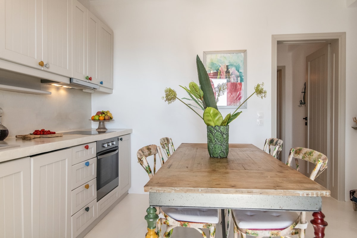 Disfruta de tu estadía en una villa de estética excepcional dentro del complejo Enea Tinos. La villa tiene 120 metros cuadrados y puede alojar hasta 6 huéspedes. Se encuentra muy cerca de la ciudad de Tinos y ofrece acceso directo y fácil a los pueblos de la isla. También tiene una cocina totalmente equipada, ideal para preparar cualquiera de tus comidas, un baño y un inodoro.