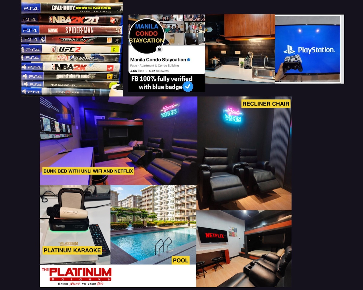 Enjoy and relax with a stylish experience at this centrally-located place with entertainment and Sierra Madre view at a spacious balcony. Chill with family and friends as we are equipped with Playstation, Karaoke, lots of Board Games and super fast WiFi. You can also watch Netflix Enjoy popular restaurants and bars nearby with an easy access to public transportation and Ever Gotesco Mall You can also practice your swing as we are just across a Golf driving range.