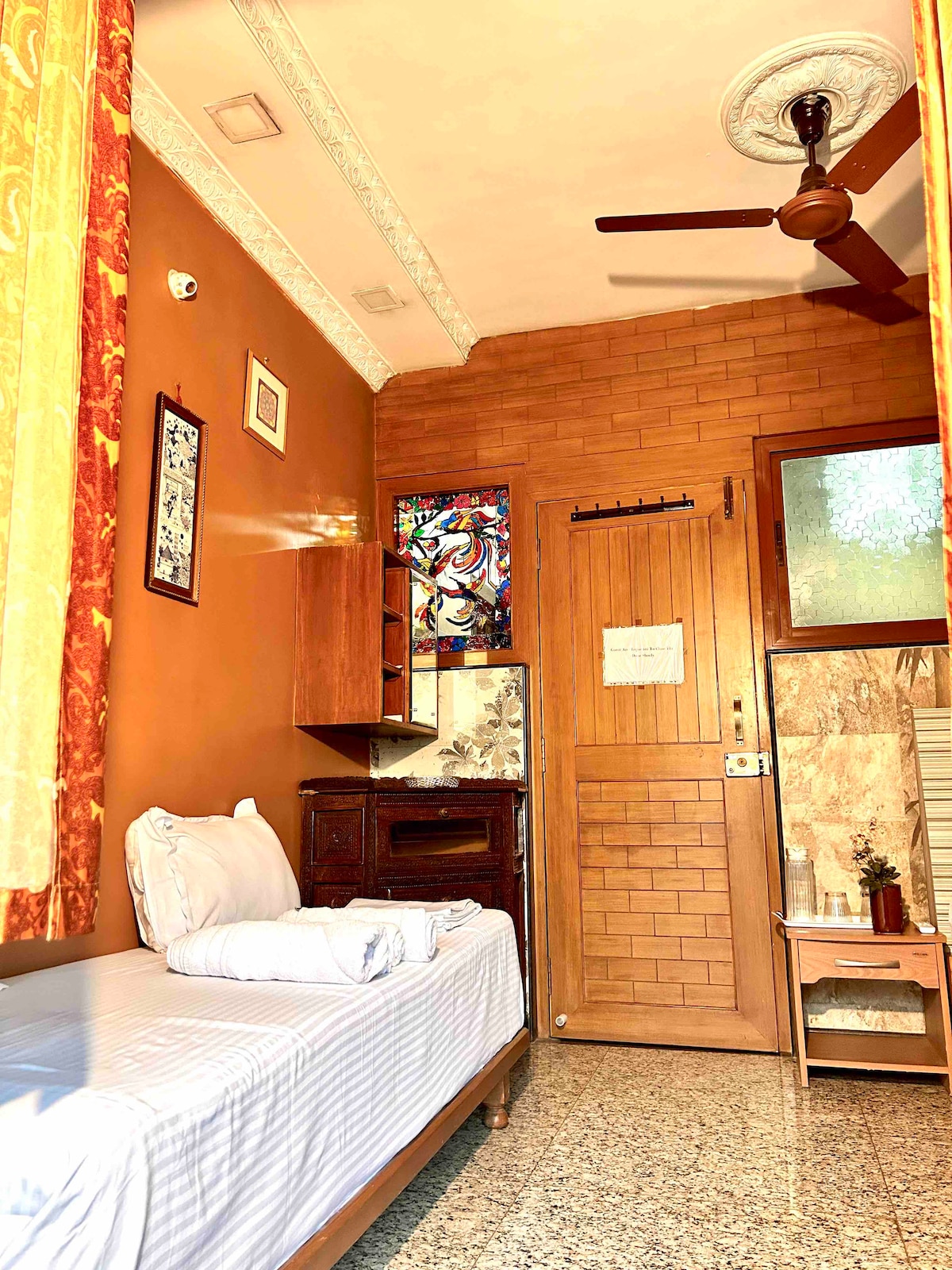 Propiedad compartida.[La mitad del apartamento de cuatro dormitorios] El baño y la cocina son privados Se solicita al huésped que lo envíe al momento del check-in . Hay mesa auxiliar, armario en el balcón adjunto ,dos sillas ,tocador, lado dela esquina Los huéspedes pueden obtener agua RO, mesa de planchado,microondas de tThres huéspedes pueden dormir en la habitación adjunta con balcón. Esta habitación es una extensión del dormitorio individual con estufa individual de aire acondicionado y baño. Dos habitaciones, un baño y la cocina están dedicadas a una familia de 5 personas.