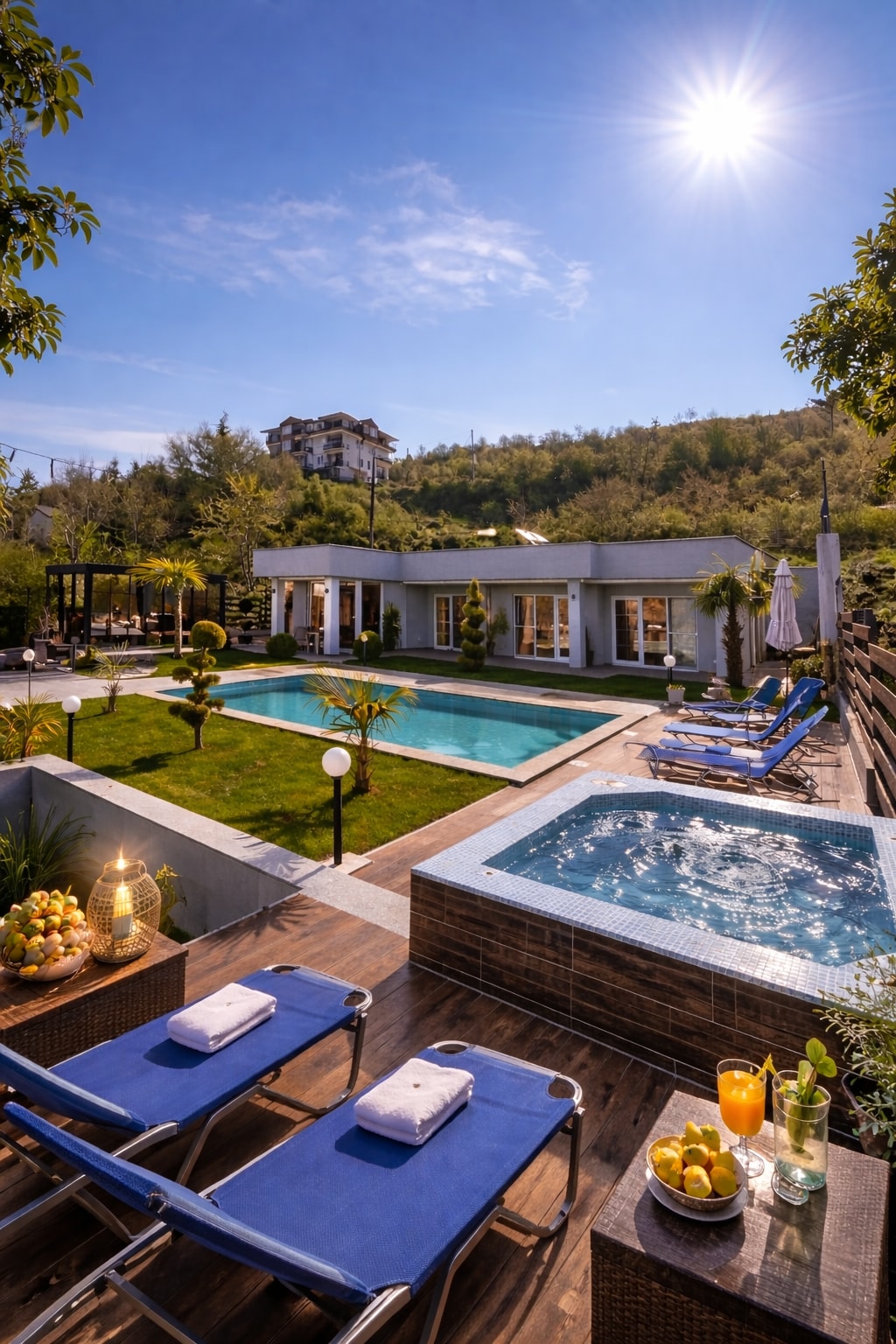 Olvídate de tus preocupaciones en este espacio espacioso y sereno. Villa Diana se encuentra en lo alto de una parte superior en el lado sur del monte Vodno, en un entorno rural tranquilo, a solo 15 minutos del centro de la ciudad de Skopje. Ofrecemos aire fresco, vistas espectaculares, piscina privada de agua salada prístina y el encanto que solo un pequeño pueblo amigable puede proporcionar. Relájate junto a la piscina,haz senderismo o ve a la sala de fitness para un entrenamiento rápido antes de adentrarte en la ciudad. Por favor, ven y disfruta, tu villa te espera.