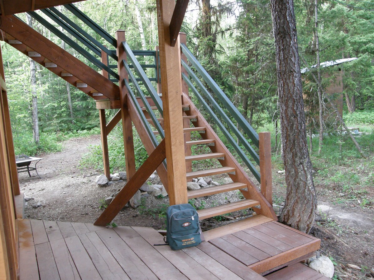 Se requiere amor por el aire libre y la naturaleza. La cabaña está situada en una ladera, en medio de un bosque, con vistas al valle del río Thompson y a la montaña que se encuentra al otro lado. Un paseo de cinco minutos cuesta arriba, a través del bosque, te lleva a un destino completamente remoto y privado. Cubierta completa debajo, cabaña arriba. Experiencia en camping es un plus. A 15 minutos de Chase y a poca distancia de otras grandes aventuras al aire libre.