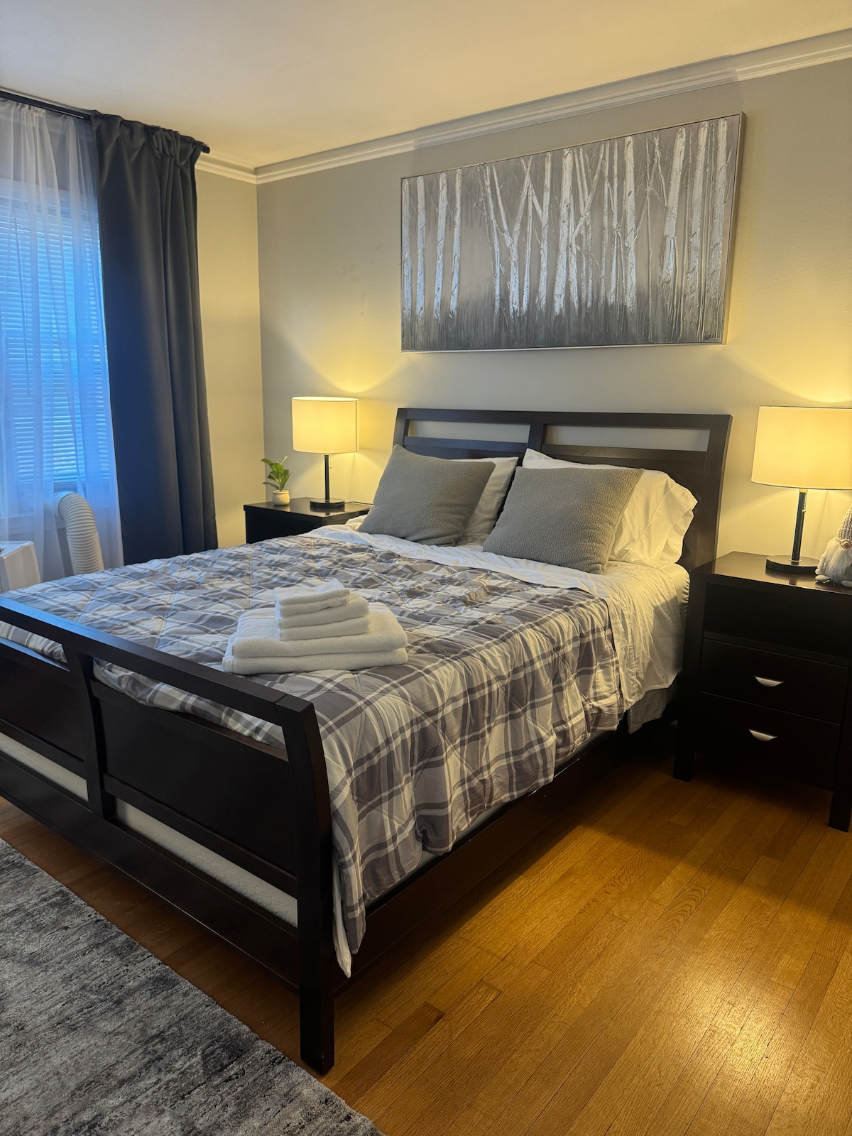 Este departamento de 1 dormitorio en el piso superior es tu base tranquila y luminosa a solo 10 minutos del aeropuerto O'Hare y cerca de la línea azul para un fácil acceso a la ciudad. Disfruta de una cocina completa, wifi rápido, cama tamaño king y televisor inteligente para noches relajantes. • Estacionamiento gratuito en la entrada con previo aviso • Asientos en balcón privado • Espacio de trabajo exclusivo y wifi rápido • Cama tamaño king cómoda como en un hotel + cortinas opacas • Check-in autónomo + entrada privada Si bien no hay lavandería en la unidad, está disponible el servicio opcional de lavado y doblado ($25/carga).
