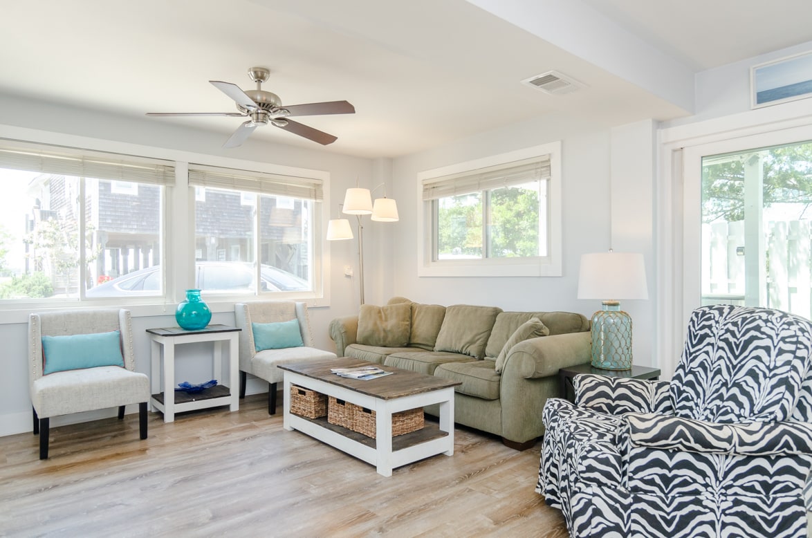 A classic 1946 duplex cottage on the outside, reimagined as a modern coastal retreat on the inside, The Bungalow Loft blends timeless charm with contemporary comfort. This thoughtfully designed space features one bedroom, two additional daybeds in the living area, a full bathroom, a well-equipped kitchen, and a cozy dining nook. Step outside to enjoy expansive outdoor living, complete with a front porch, spacious deck, fire pit, and refreshing outdoor shower.
