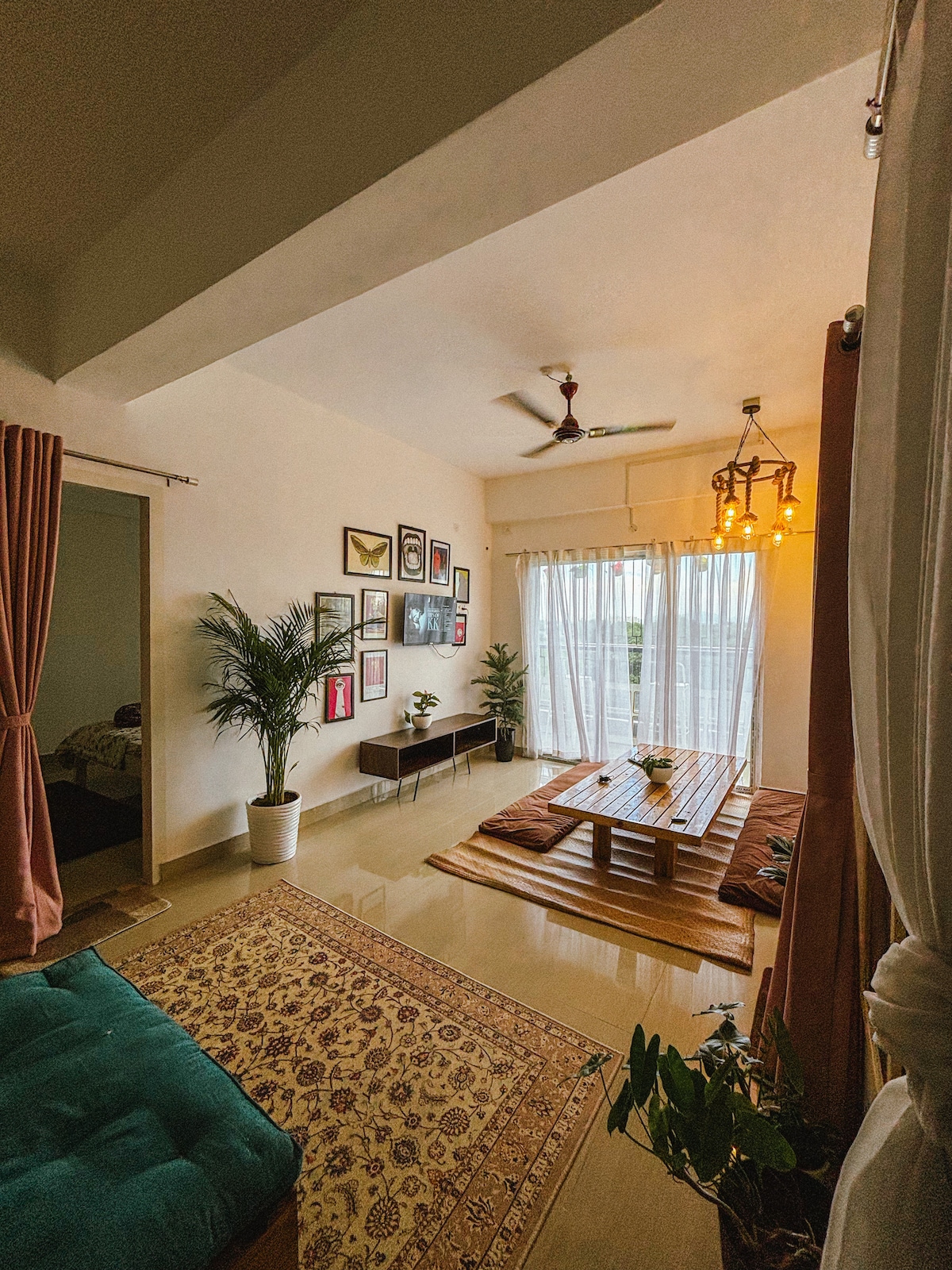 Come for a calm and peaceful stay at this one of a kind living cum bedroom flat attached to a beautiful terrace garden. Since it is an independent terrace flat, you can enjoy all the privacy you want while still having access to people within the premise in case you feel like connecting with them. This sets a perfect balance for anyone who might want to cherish the vibe of both worlds, the comfy, cozy solitude and also the warm, friendly, social interactions with people as per choice.