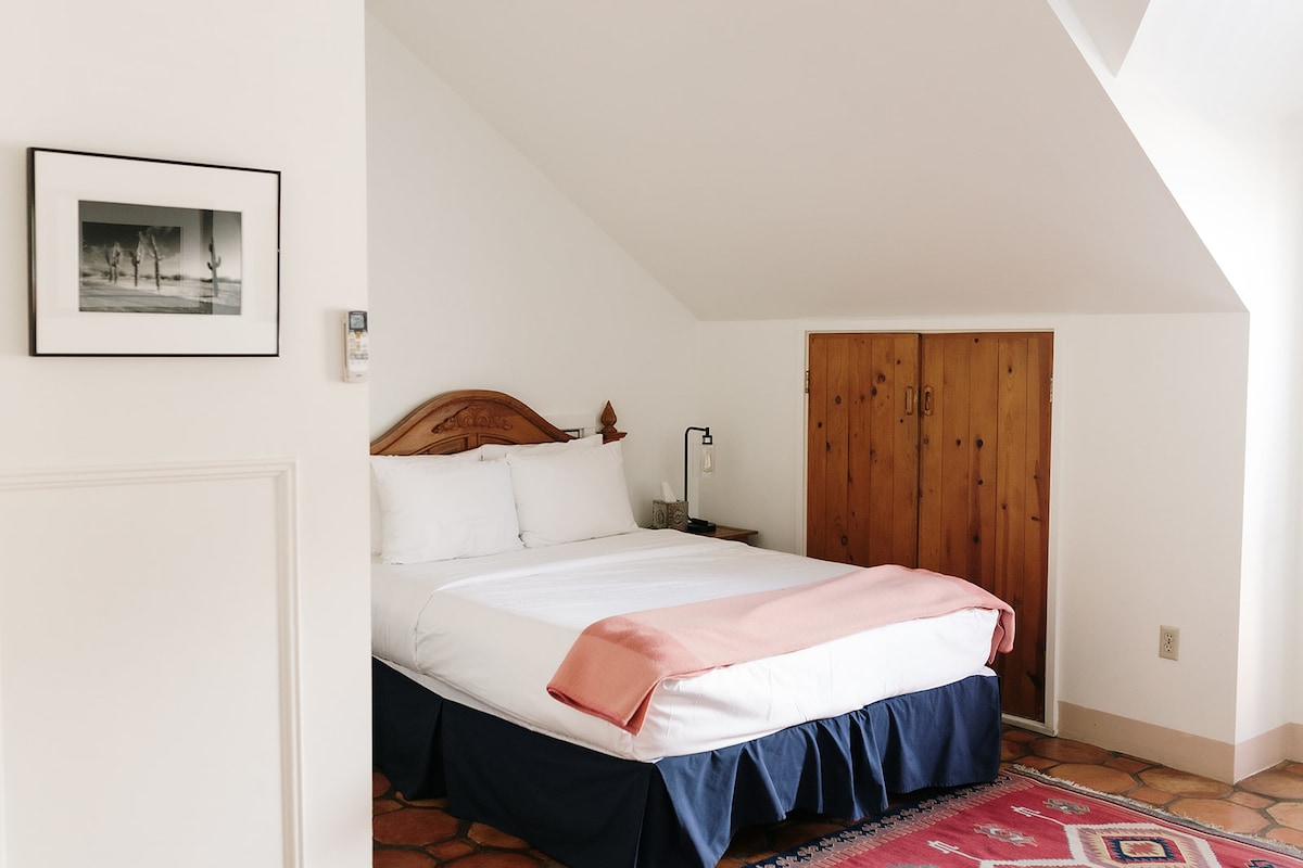 Perfecto tanto para viajeros solitarios como para aquellos que comparten, estas históricas habitaciones de adobe tienen suficiente espacio para relajarse. Tienen una cama tamaño king y sábanas suaves, muebles antiguos y una chimenea, junto con WiFi de cortesía, aire acondicionado y TV de pantalla plana. Todos nuestros huéspedes tienen acceso a sesiones de yoga fuera del sitio de cortesía y una piscina cubierta.