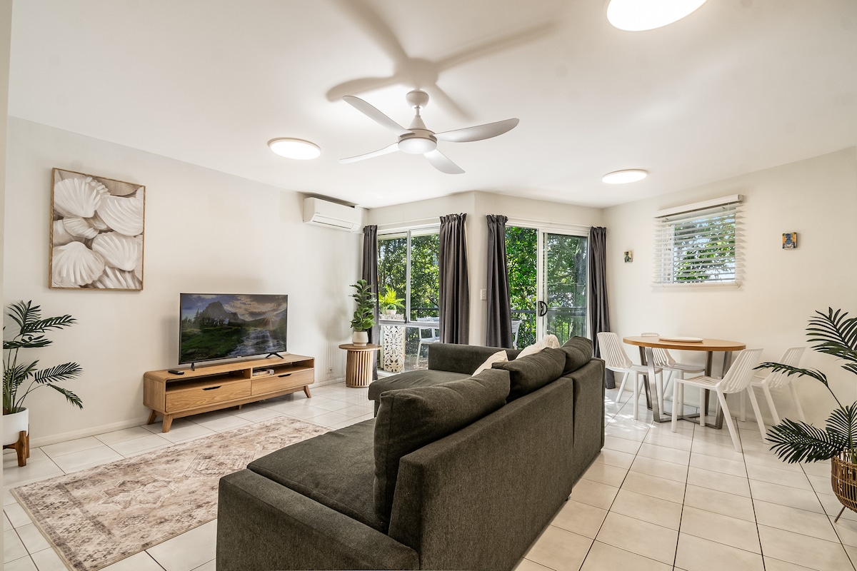 Acogedor y confortable apartamento tipo estudio en un ala privada y aislada del centro vacacional con vistas al jardín. Escápate para un pequeño descanso. Relájate junto a la piscina y disfruta de comidas al aire libre durante todo el año o pasea hasta las playas vírgenes y cena en cafeterías y restaurantes locales. El centro vacacional cuenta con aparcamiento seguro, cancha de tenis, gimnasio, jardines y cafetería/bar junto a la piscina. Salt Village tiene restaurantes, tiendas minoristas, bar, licores y minimercado. Disfruta de pistas para caminar/montar en bicicleta y excursiones de un día a Byron, Gold Coast y el monte Warning.