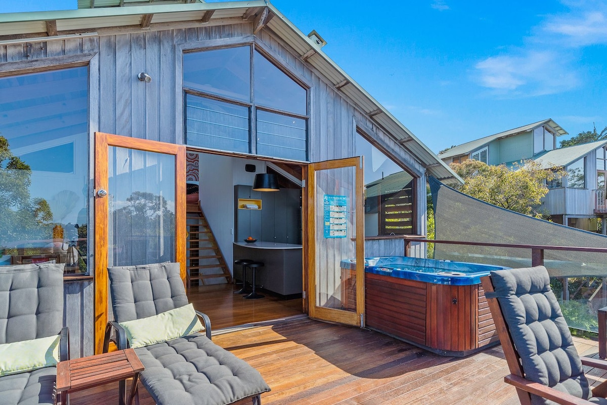 This unique treetop house features two spacious bedrooms and two bathrooms with a large private balcony, its own outdoor spa and stunning ocean views. Accommodating up to five guests, this retreat includes a comfortable double sofa bed in the loft when a fifth guest stays (additional charges will be applied) Free allocated parking for one vehicle, all linen is supplied, including pool towels and a set of starter amenities to make settling in easy.