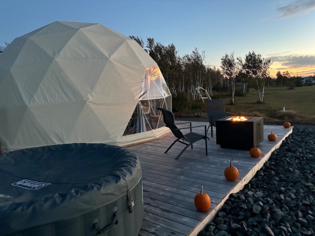 Cribbons Coastal Dome, cúpula abierta todo el año, ubicada a lo largo de Sunrise Trail en Nueva Escocia, en el condado de Antigonish Zona exterior * Gran terraza privada/paredes de privacidad * Jacuzzi con vistas al mar. * Barbacoa. * Comedor * Ducha exterior. * Zona de fogatas. * A 5-8 minutos a pie de 2 playas de arena Interior * Cama tamaño king * Cocina pequeña (nevera, congelador, quemador, microondas) * Baño completo * Smart TV/wifi * Zona de té y café Otros servicios * Accesible en silla de ruedas * Llegada autónoma * Estacionamiento gratuito. * Se admiten perros (2 perros como máximo)
