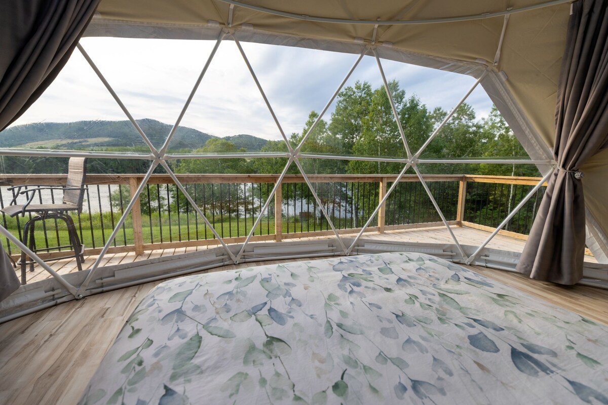 ¡Te damos la bienvenida a Jolicure Cove! Situado a solo 10 minutos de la parada Aulac Big Stop. Prepárate para una inmersión total en la naturaleza en nuestra cúpula privada frente al lago. Puedes esperar completa paz y tranquilidad, excepto los sonidos de la brisa, los colimbos y otros animales del bosque. ¡La cúpula es la única en la propiedad, que se encuentra en más de 40 acres! Diviértete jugando en el césped, sentado alrededor de un fuego en la hoguera o leyendo en el muelle.