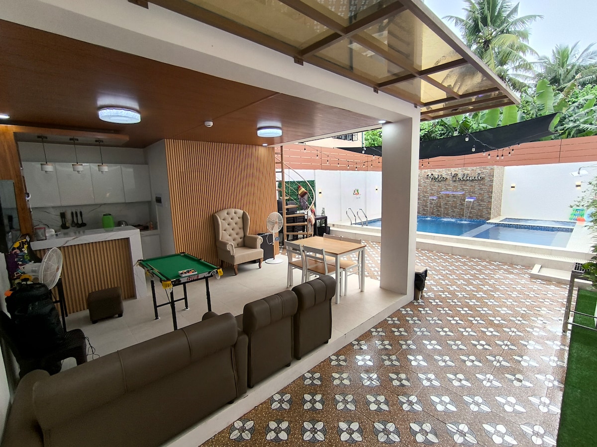 -Villa vacacional con piscina en Concepción, Tarlac. - 1 dormitorio, 1 sala de estar, 1 cocina, 1 comedor, 1 baño. - 2 camas y 3 sofás. - Tiene capacidad para 6 a 8 huéspedes.