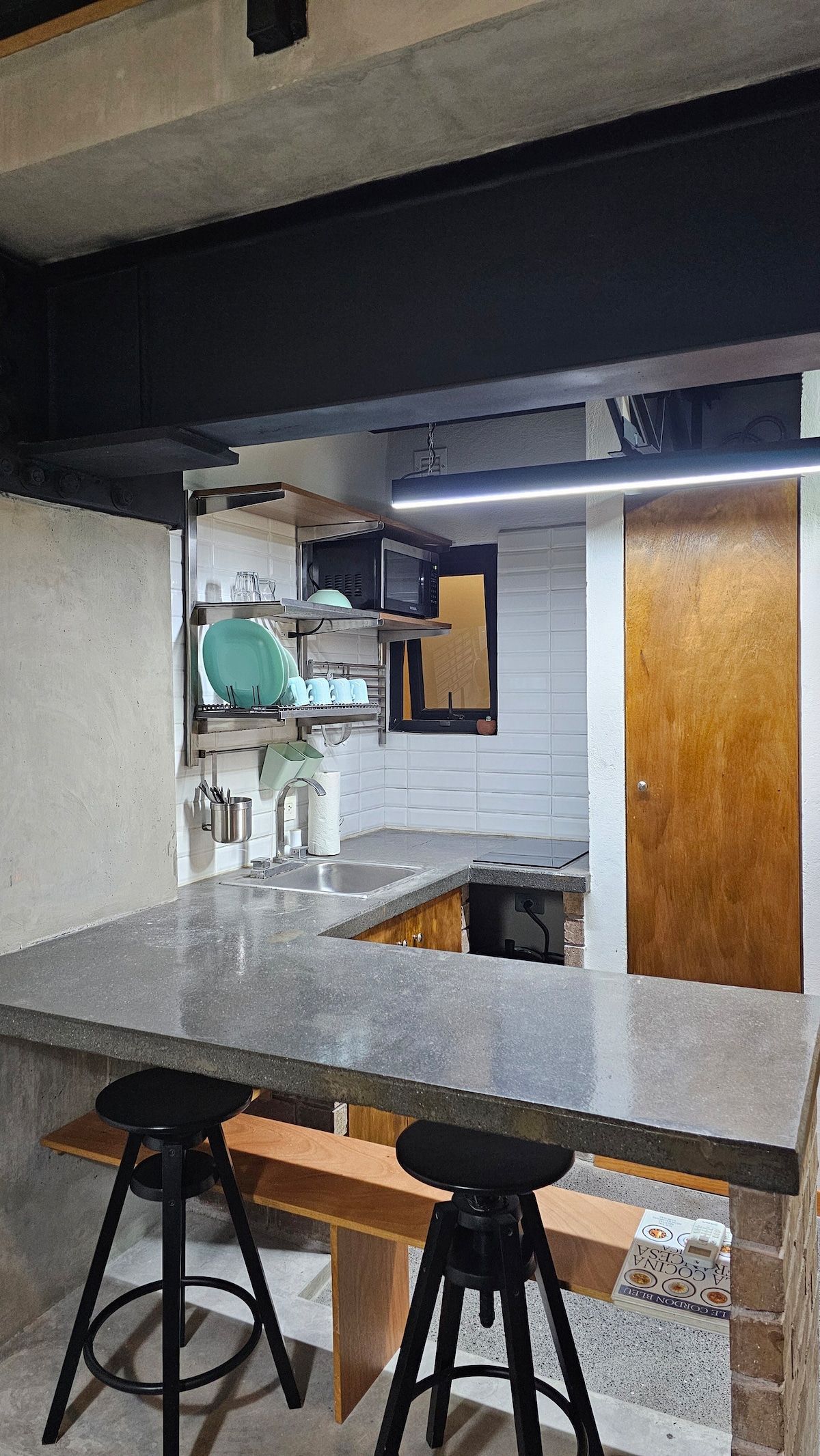 Disfruta de la experiencia de alojarte en el corazón de Monterrey. Luminoso y cómodo apartamento tipo estudio con cama tamaño queen, sofá cama, wifi, TV de alta definición, baño y cocina totalmente equipada con nevera y todo lo que necesitas. Cerca del metro, el tren y calles importantes, estarás conectado con toda la ciudad en cuestión de minutos.