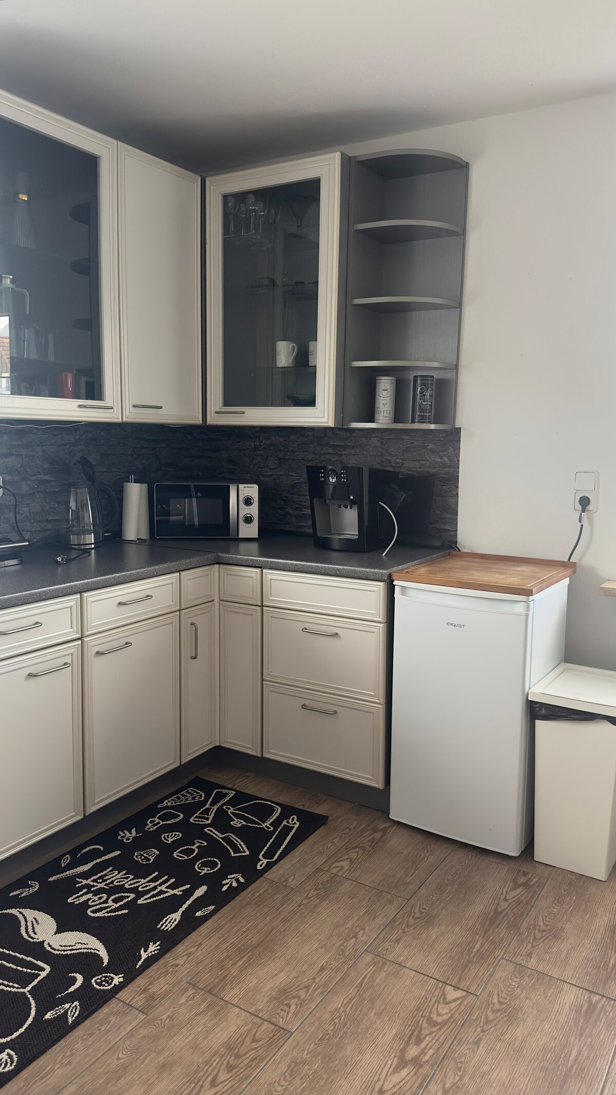 El apartamento tiene un espacio de estacionamiento que se encuentra justo enfrente de la entrada independiente. El apartamento incluye: - Pasillo con aseo y ducha independientes, - Cocina equipada con electrodomésticos, - salón abierto con comedor, TV de pantalla plana, ... - dormitorio con armario y cama doble, - baño con luz natural con bañera y ducha, - terraza privada con toldo y muebles de terraza. ¡Estamos encantados de conocer a huéspedes agradables, les deseamos un buen viaje y una agradable estancia con nosotros!