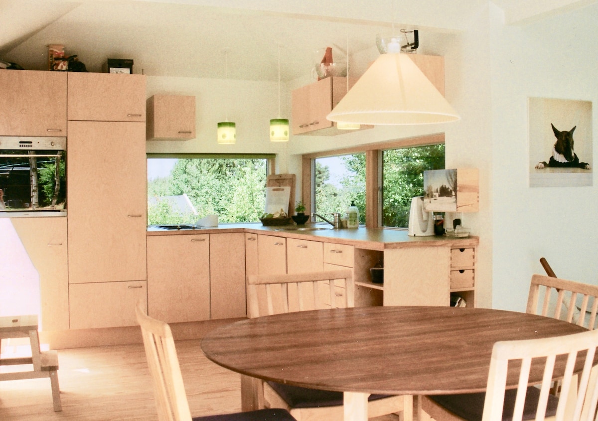 Encantadora casa pequeña y de diseño con terraza en la azotea y cubierta de madera. - A 1 hora en coche de Copenhague. Supermercado a 1000 m, playa a 500 m, bosque a 700 m. Escondite romántico para 2 o para una familia pequeña. El mar, el bosque, el campo, vistas al mar, patio privado (se admiten perros). Ten en cuenta: El alquiler mínimo es de 7 noches. En temporada alta, de junio a octubre, la casa se alquila principalmente de sábado a sábado, por 7, 14 o 21 noches.