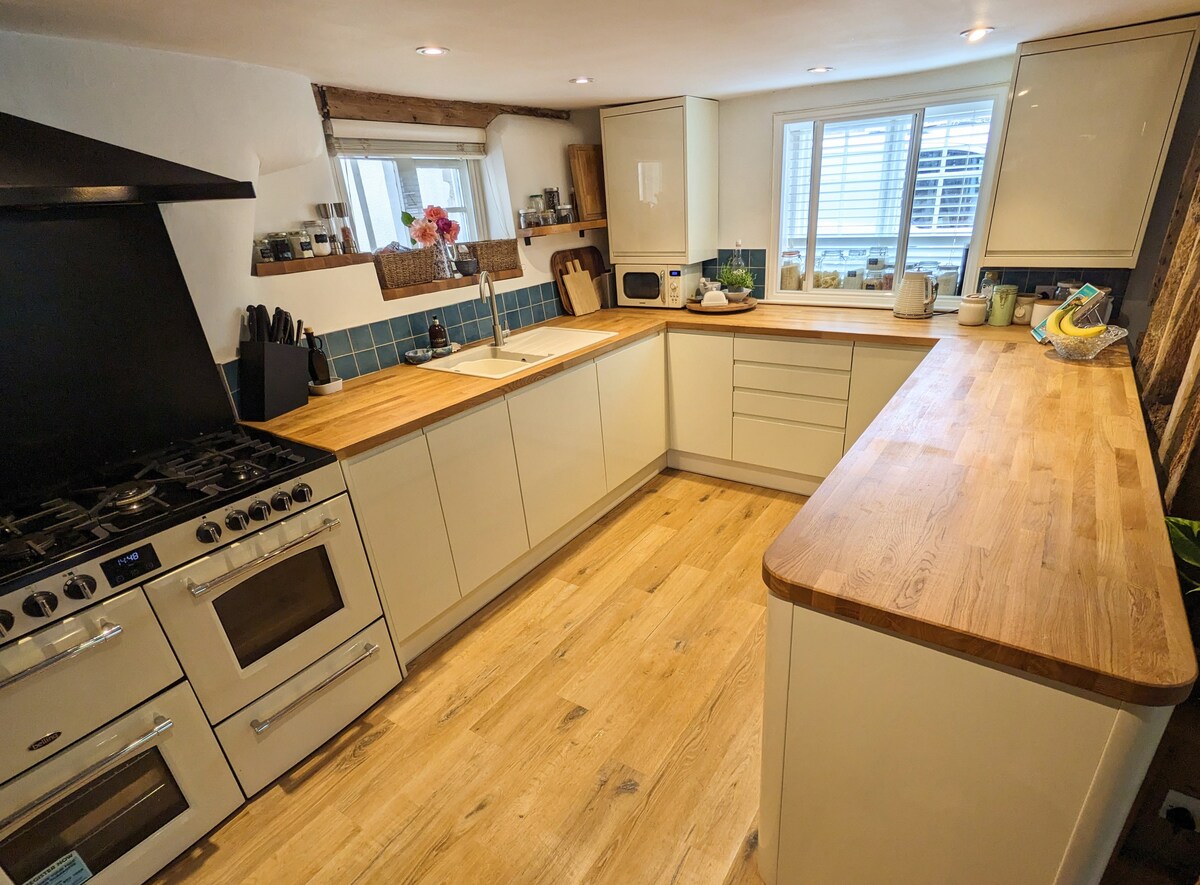 Un ala independiente del siglo XIV junto a la casa principal situada en una ubicación tranquila a las afueras de Faversham, Kent. Esta encantadora casa de campo es ideal para cualquier persona que quiera explorar Kent. O si solo quieres relajarte, trae un libro o dos y relájate frente al fuego de la estufa de leña. Hay senderos para caballos y senderos públicos en la puerta, que son hermosos en cualquier época del año, ya que están en el corazón del Jardín de Inglaterra. Hay muchas atracciones del National Trust/English Heritage muy cerca.