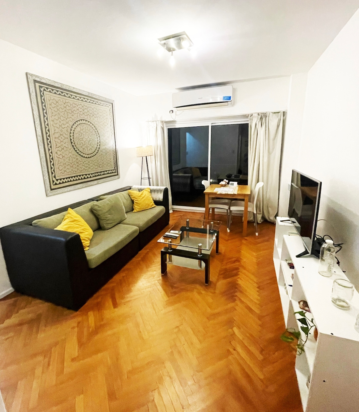Departamento moderno, luminoso y privado, decorado. La ubicación es super centrical!. Son 38 m2 mas balcón, con aire acondicionado y Tv Smart HD. A 400m del Obelisco, 200m de la Av Corrientes y 200m de la 9 de Julio. Podras caminar a cines, teatros, cafés, restaurantes, museos, discos y todo lo que ofrece Bs. As para tu visita. Todas las fotos son 100% reales!. Estacionamiento las 24hs, pago, a 30 metros del edificio. Queremos que tu viaje sea una experiencia divertida y segura. Te esperamos !