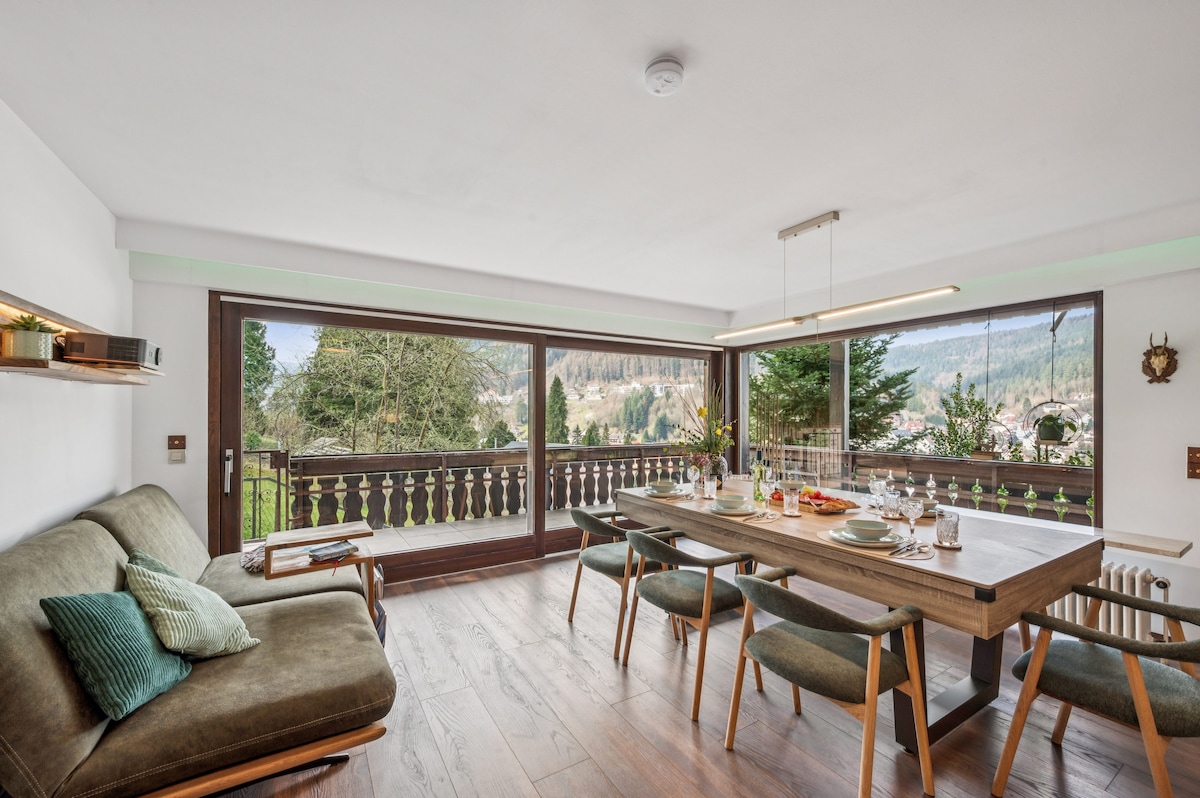 Excepcional casa de campo moderna con hermosas vistas al lago y a la Selva Negra. Puedes esperar una chimenea independiente, un jacuzzi, una sauna al aire libre y una casa moderna convertida con una cocina espaciosa y una gran terraza. ¡El lugar perfecto para relajarse y reponer energías!