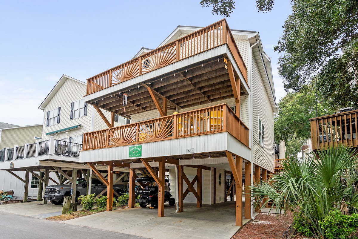 Casa de 3 dormitorios y 2 baños con capacidad para 8 personas. Gran terraza en el primer nivel con mucho espacio para relajarse. Nueva parrilla de gas al aire libre, zona de entretenimiento debajo de la casa con TV y ducha exterior. Hay 1 cama tamaño king, 2 camas tamaño queen y un sofá cama extraíble (completo). Todos los dormitorios tienen televisores inteligentes. La cocina está equipada con electrodomésticos de uso diario, ollas, platos, etc. La casa tiene lavadora/secadora y lavavajillas. Wifi y carrito de golf de cortesía incluidos. 9 huéspedes máx. No se admiten mascotas. Debes tener 25 años para alquilar. Se pueden añadir sábanas por 150 dólares.