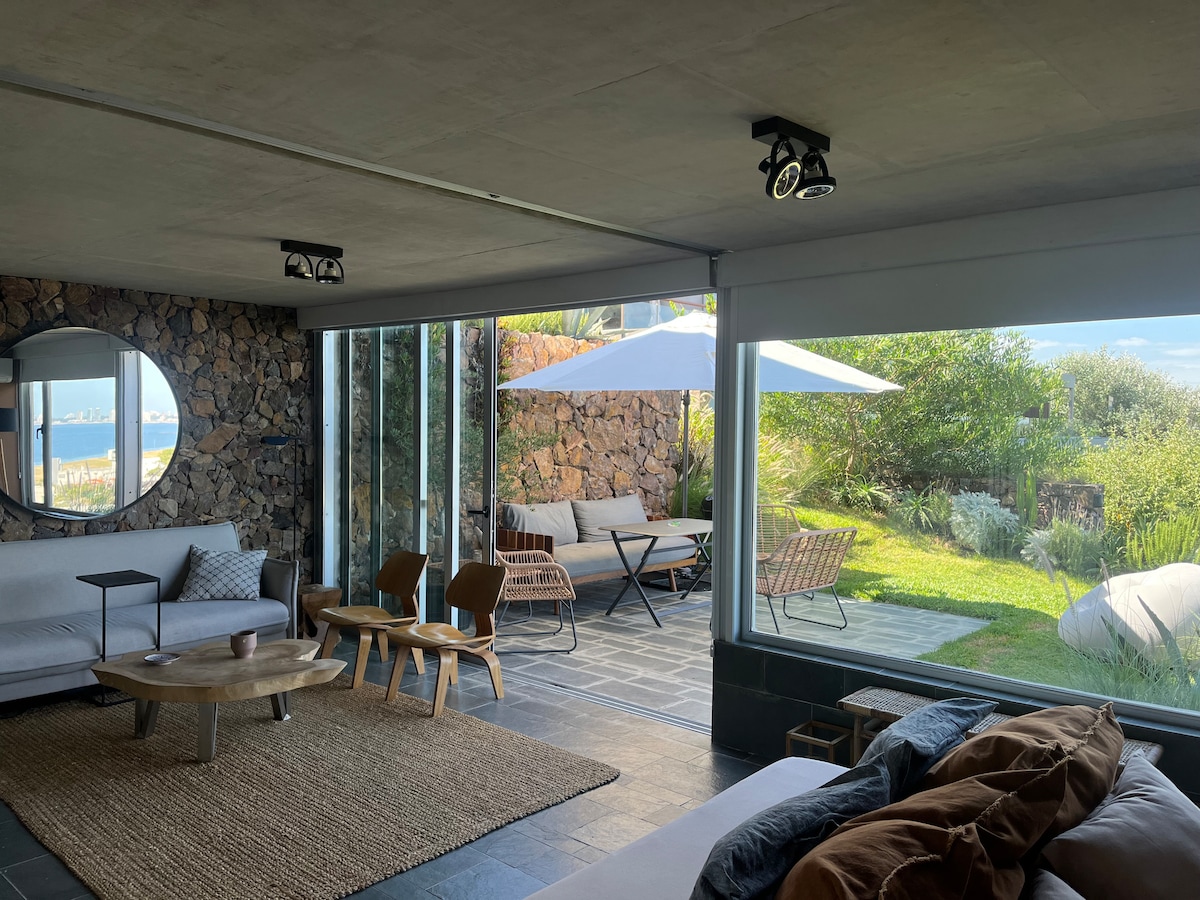 Primera línea frente al mar, sobre una hermosa playa. Ubicada a la altura del Aeropuerto de Punta del Este. A 18 minutos del centro de Punta del Este y 7 minutos de Punta Ballena. Piscina (11m x 5m). Playroom. 5 dormitorios con 9 camas (11 plazas) y 2 camas para bebés. Aire acondicionado, wifi de alta velocidad por fibra óptica. TV con chromecast. Piscina cercada y protección de seguridad para niños en barandas y escaleras de toda la casa. No incluye gastos de electricidad y agua.