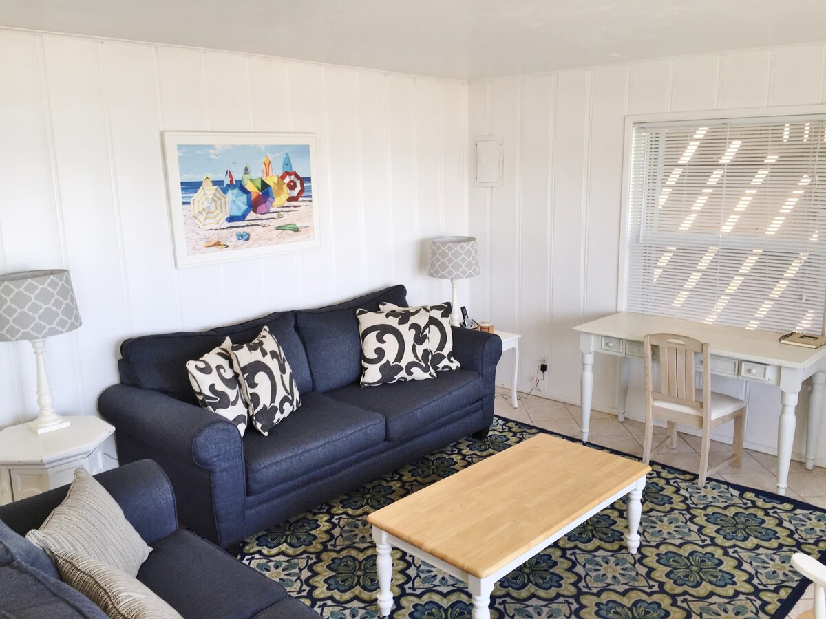 Bienvenido a un apartamento recién remodelado con vistas al mar a pocos pasos de la playa en North Coast Village. Todo es nuevo, desde los electrodomésticos de cocina de acero inoxidable con encimeras de cuarzo blanco hasta el hermoso baño con ducha a ras de suelo. La cocina tiene armarios nuevos y todo lo necesario para cocinar una comida casera si lo deseas. Hay una cafetera y se proporciona café. Se utilizó un tema de playa para decorar todo el apartamento que realmente te hace sentir como si estuvieras en el paraíso.