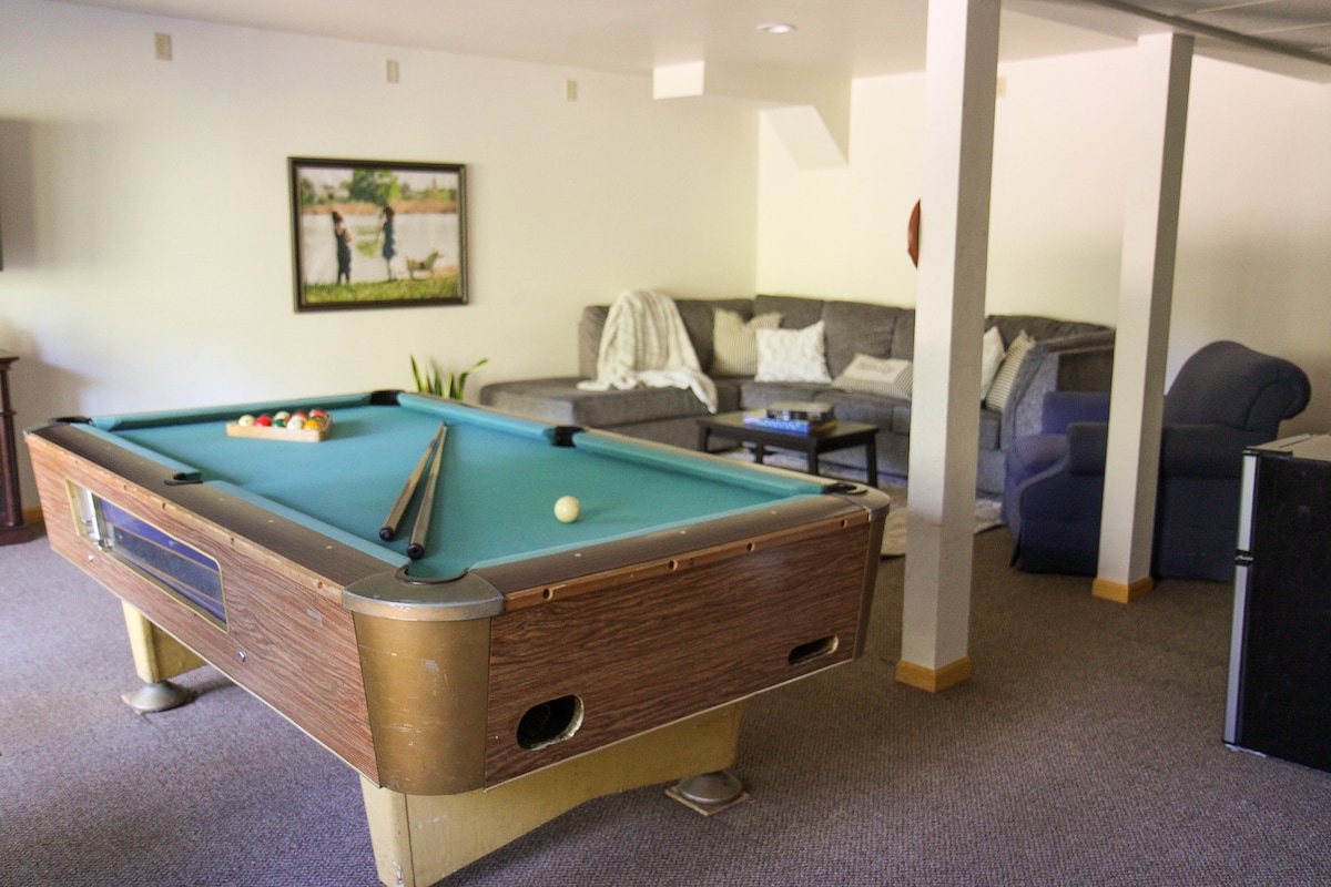 The Game Zone – Side B of the Waterfront Duplex is designed for nonstop fun and relaxation. This fully remodeled unit features 2 king bedrooms, 2 bathrooms, and a massive game room complete with shuffleboard, air hockey, ping pong, movie theatre room, and more. Outdoors, enjoy shared amenities including a large deck, fire pit, patio table, dock, and swing. Two kayaks and two SUPs are included for water adventures. Just 30 mins from Lambeau Field with local limo services available for game day!