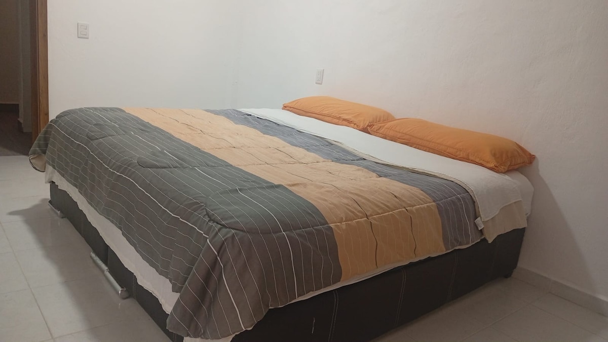 Nuestro alojamiento ofrece un lugar tranquilo, campestre, con un lindo jardín para disfrutar en un ambiente relajado, en una zona accesibles y trato familiar. Pará reservar se te pide reportar cuantas personas la ocuparan es con capacidad de 1 a 5 personas servicio de toallas, agua, jabón de tocador. etc.