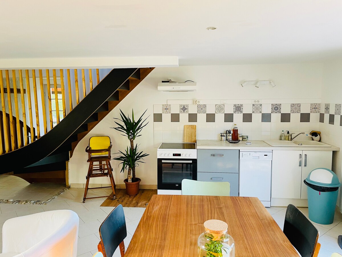 Pequeña casa con encanto con una decoración marítima a 100 metros de la playa y del centro. ¡Olvídate del coche! Todo es accesible a pie: dique, restaurantes y tiendas. En la planta baja: salón con sofá cama, una luminosa sala de estar con acceso a una pequeña terraza en el lado de la calle y una cocina equipada con zona de comedor. En la planta superior, un amplio dormitorio (cama de 140) y su escritorio con vistas a un baño con ducha, lavabo e inodoro, así como espacio de almacenamiento.