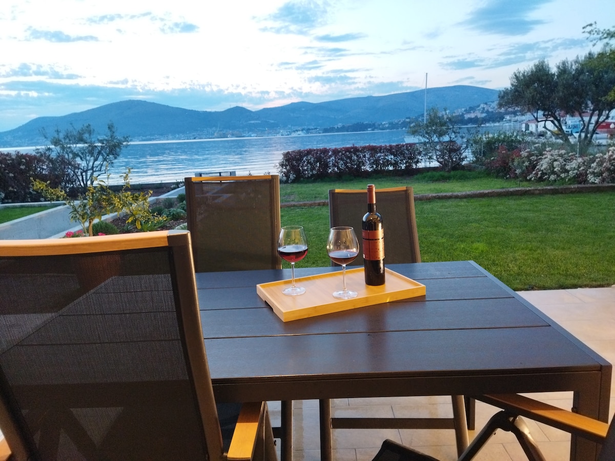 Enyoj this spacious and sun-field apartment designed to make you feel at home. The proximity of the beach 60 m, incredible and open view of the blue sea and sky and all the necessary facilities with which the apartment is equipped, allow the guest to have an ideal vacation from busy everyday life. The proximity of the city of Trogir 4 km, the city of Split 30 km and airport Split 8 km are within easy reach. All this makes this place an ideal place for your beautiful and relaxing vacation.
