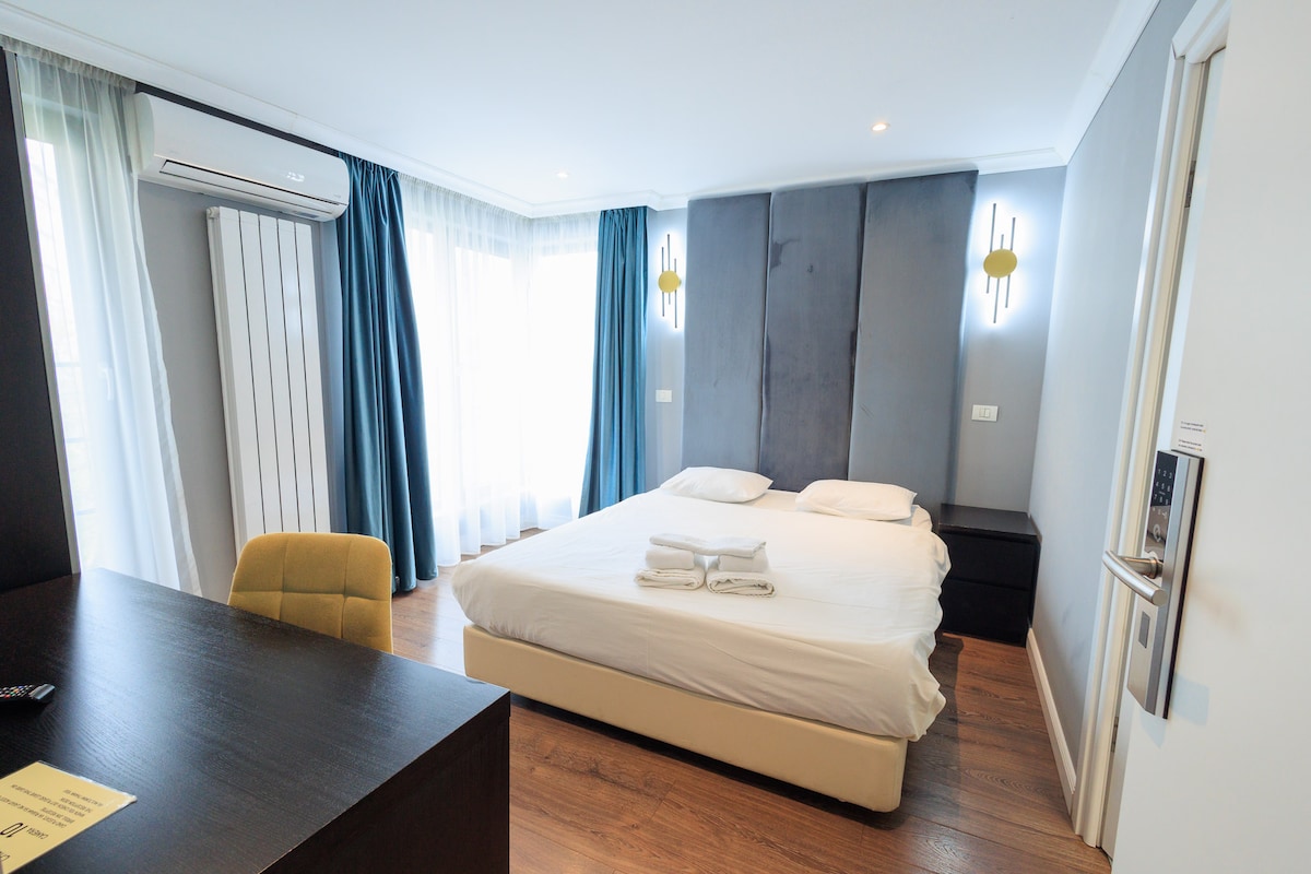 Cameră modernă și primitoare în inima Bucureștiului, perfectă pentru relaxare după o zi de explorat orașul. Pat queen confortabil, design fresh, Wi-Fi rapid, AC și baie privată. Aproape de transport, restaurante și viața vibrantă a capitalei. Alegerea ideală pentru o escapadă urbană fără griji!